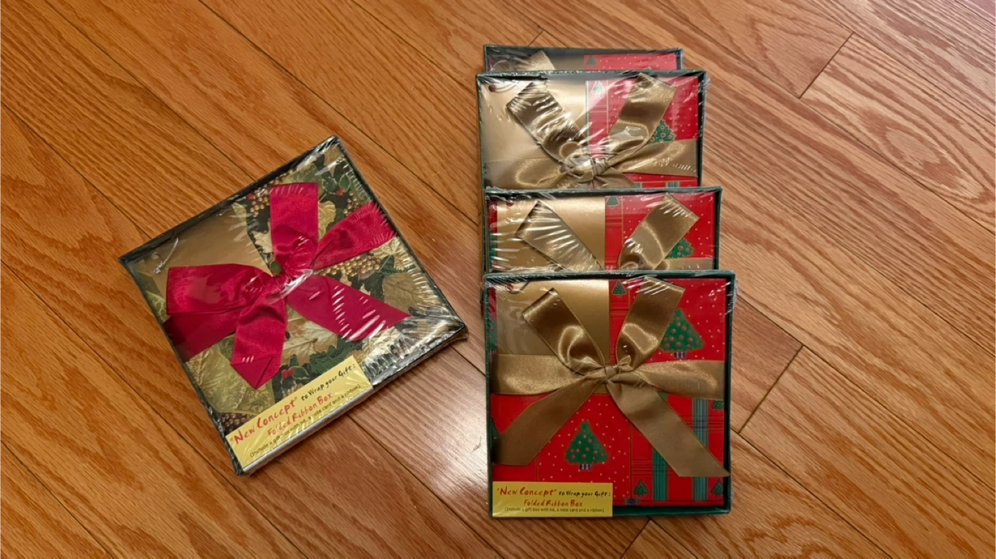 86I'm selling New Concept Folded Ribbon Boxes to wrap your gifts! They include a gift box with lid, a note card and a ribbon. 5 in total
