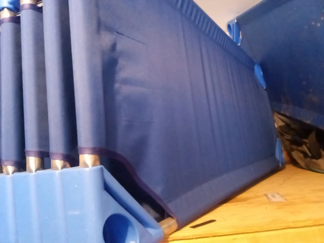 15Selling a blue folding camping cot. It's in good condition and perfect for camping trips or as an extra bed for guests. Folds up easily for storage and transport