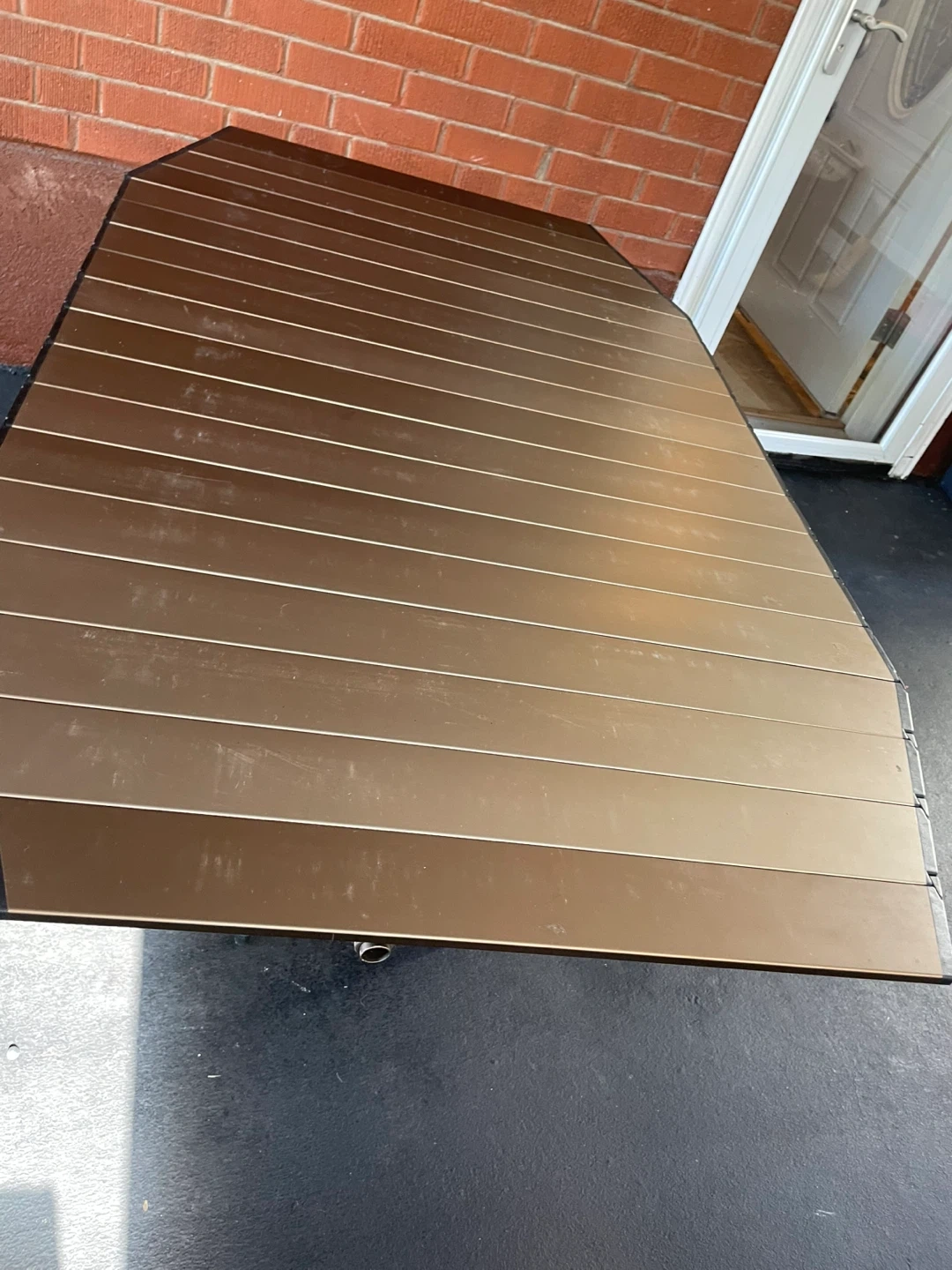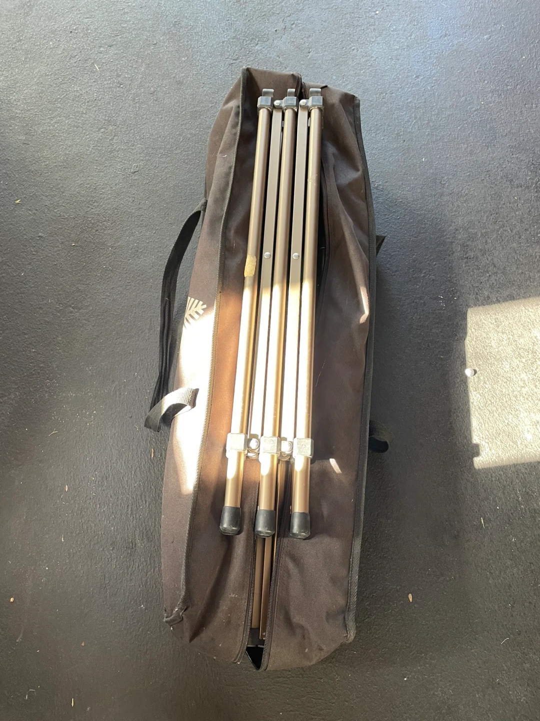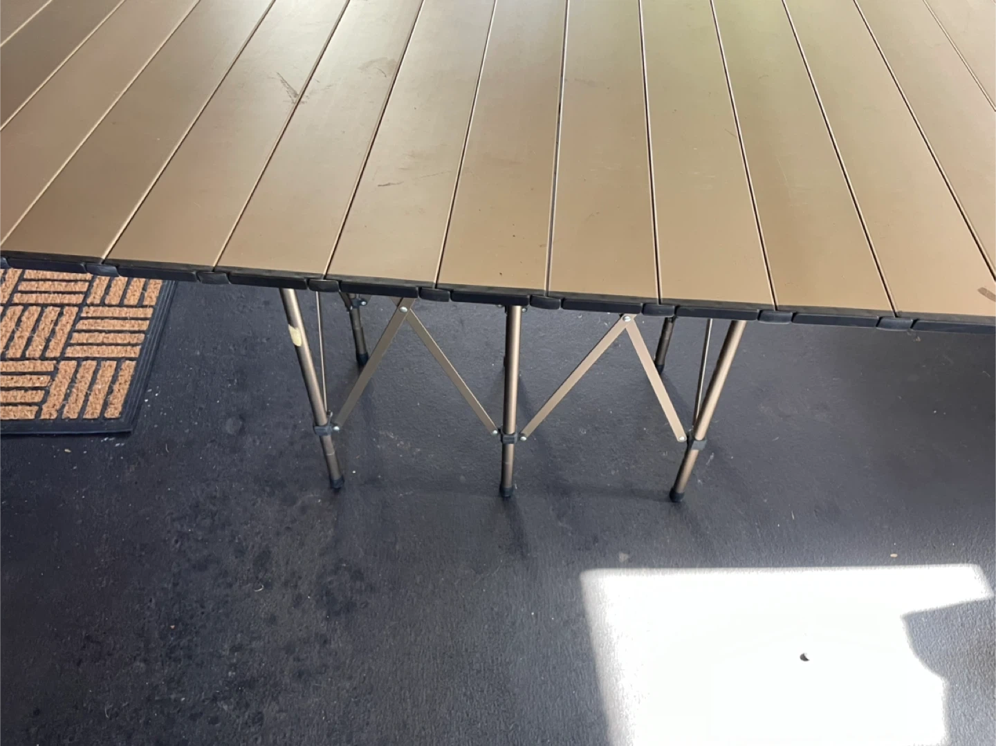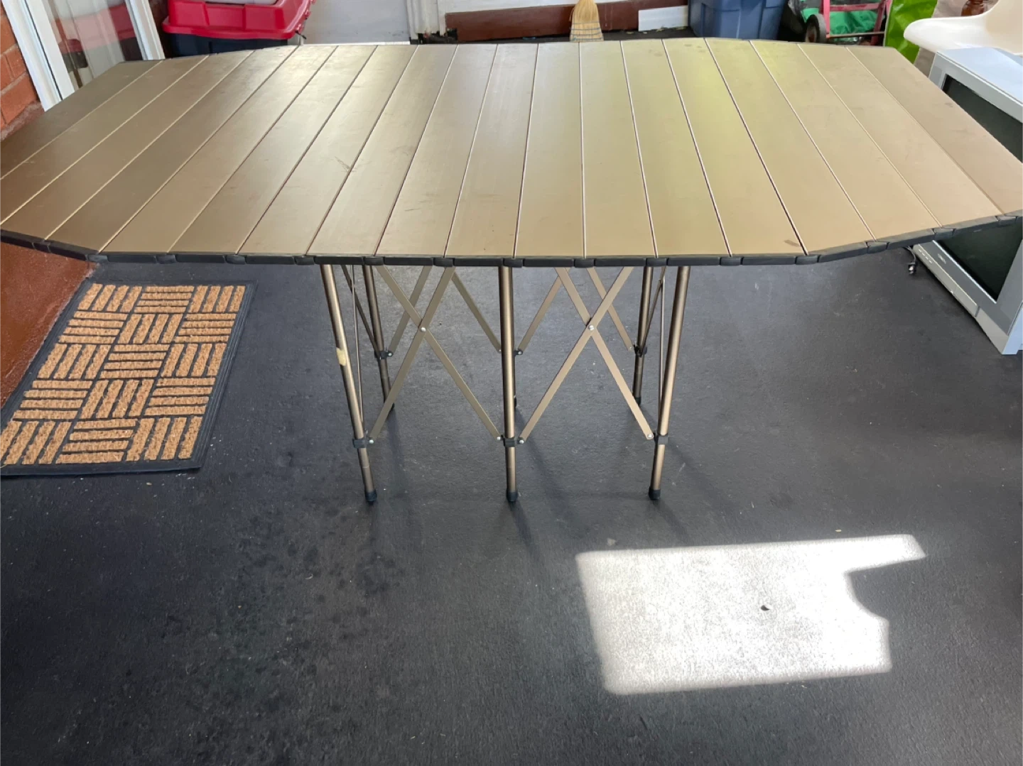 Selling a folding camping table. It's super portable and easy to set up, perfect for camping trips or picnics. It folds up nicely for easy storage in its carry sack . It's in great shape and ready for your next adventure. Metal. No damage. Folds out to approximately 5’ Pick up in Scarborough midland and Eglinton