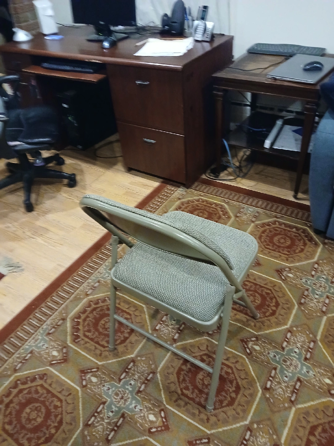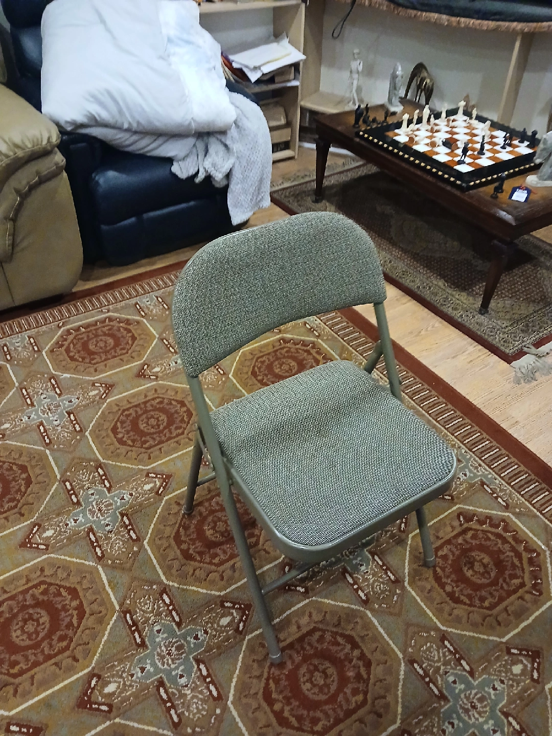 86Here's a handy folding chair, perfect for extra seating when you have guests or for small spaces. It's in great shape and ready to go!