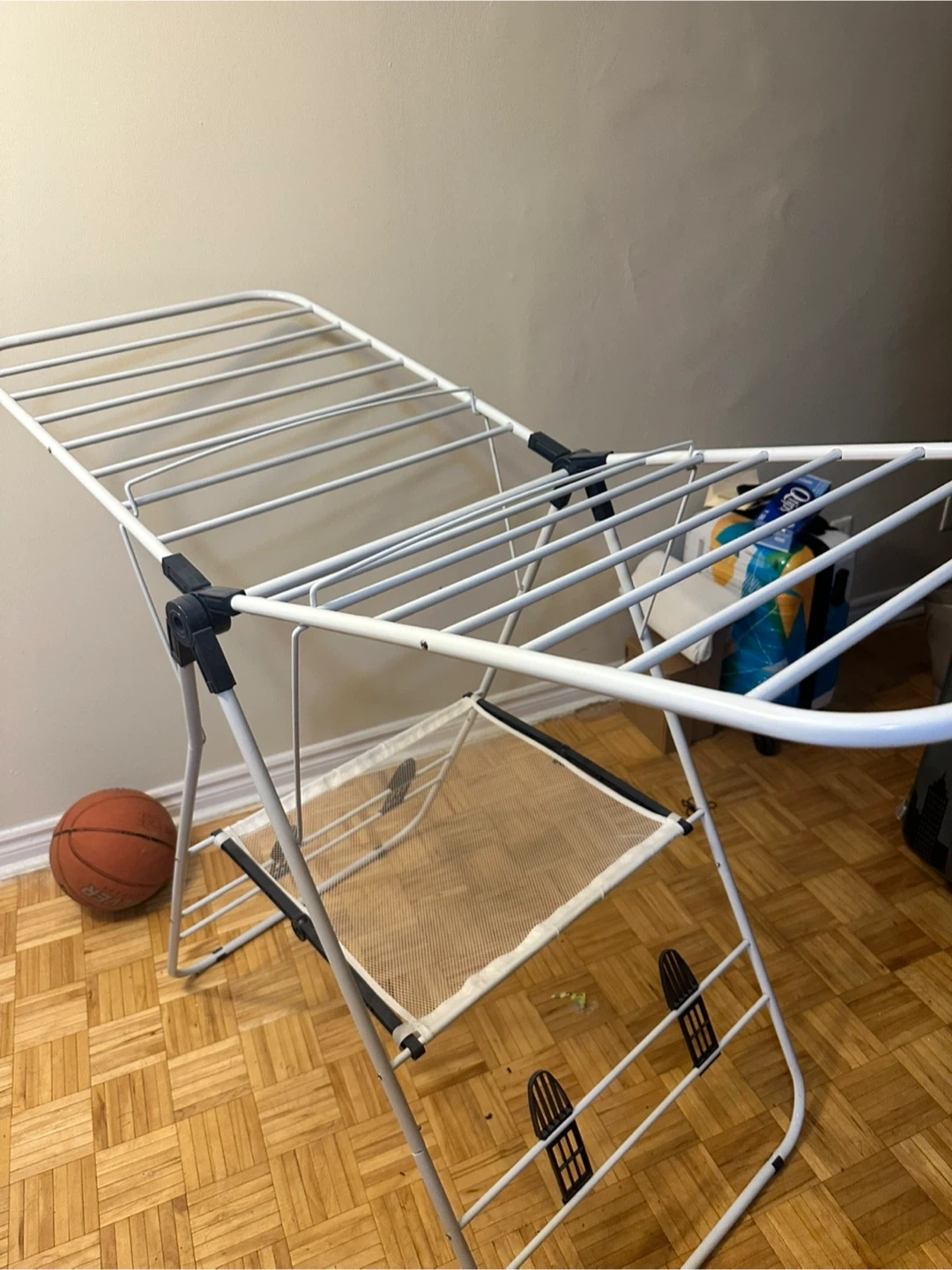 64Selling a folding clothes drying rack. It's in great condition and super handy for air-drying clothes, especially during the winter months! Folds up easily for storage when not in use