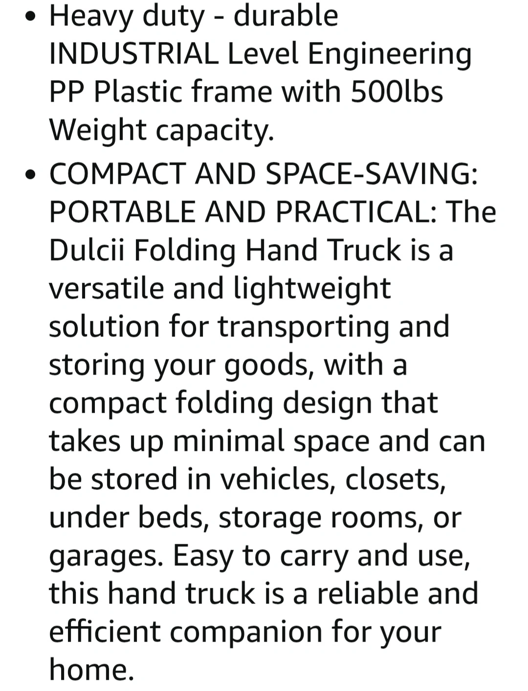 FOLDING COMPACT HAND CART. Light Weight, 500 lbs Capacity