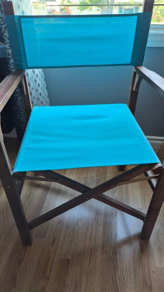 Selling 2 folding director's chairs! Barely used. They feature a turquoise canvas seat and backrest with a wooden frame. Great for extra seating or outdoor events. Folds up for easy storage. Measurements in pictures. $45 for 1 or both for $80. Pick up Transcona. Smoke free, cat friendly home. Cash or etransfer accepted.