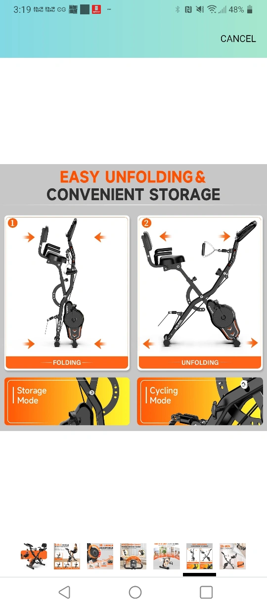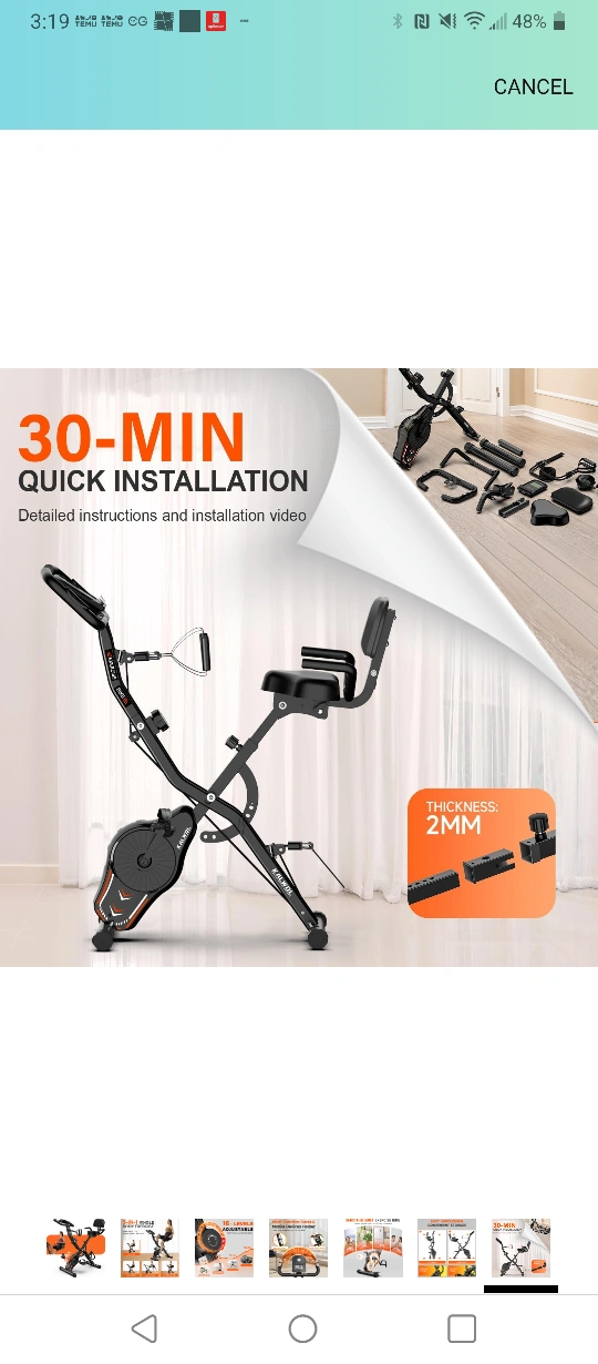 100New in box ... Compact exercise bike, easily folds for storage. Features 16 levels of adjustable magnetic resistance. Includes heart rate sensor and mobile device holder. Quiet operation.