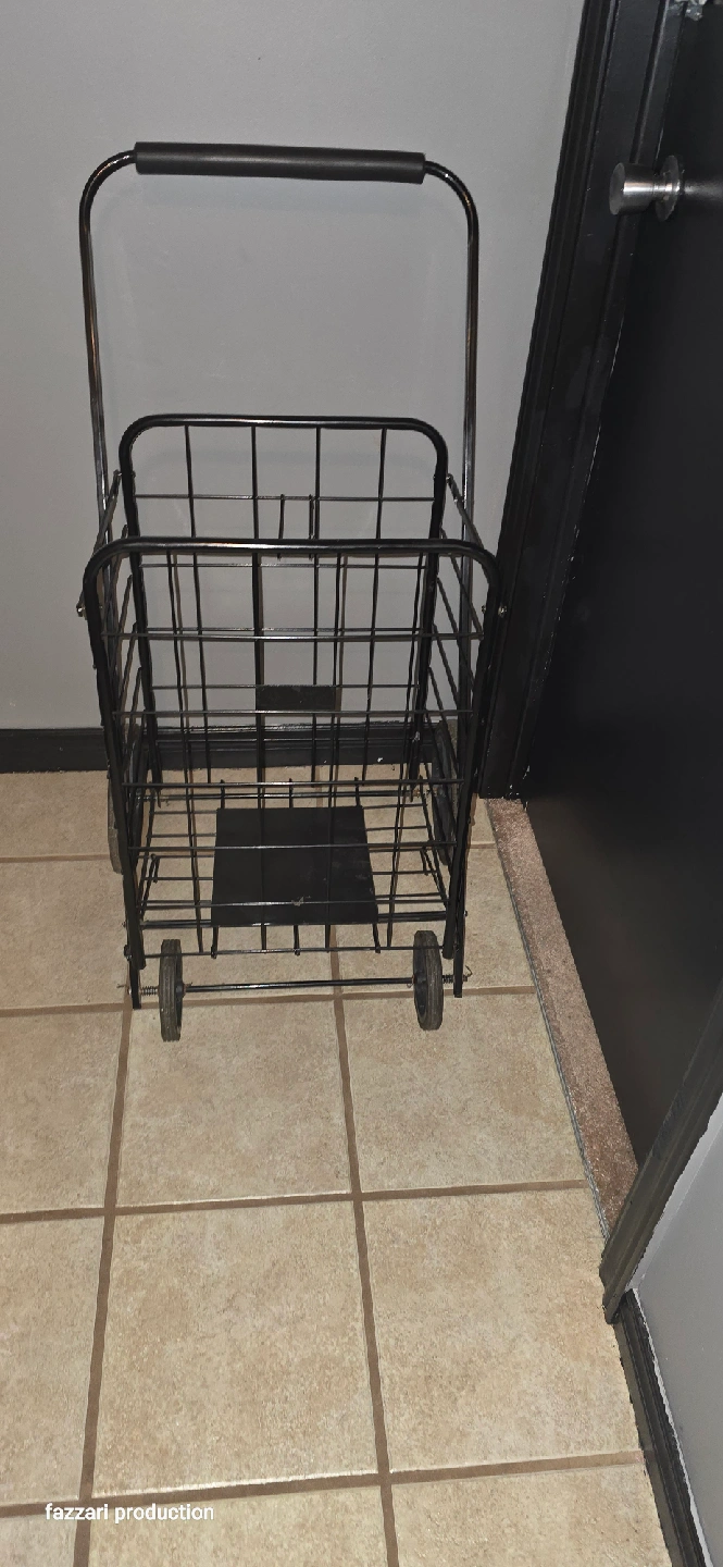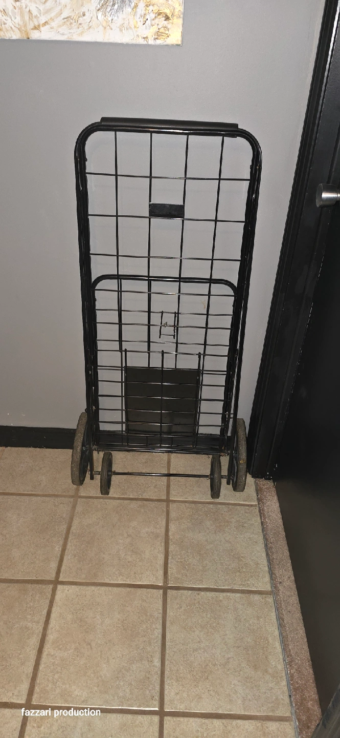 15Selling a handy folding shopping cart in black! It's perfect for groceries, laundry, or carrying items at markets and events. It folds up easily for storage when not in use. Great for anyone who needs a little extra help carrying things around