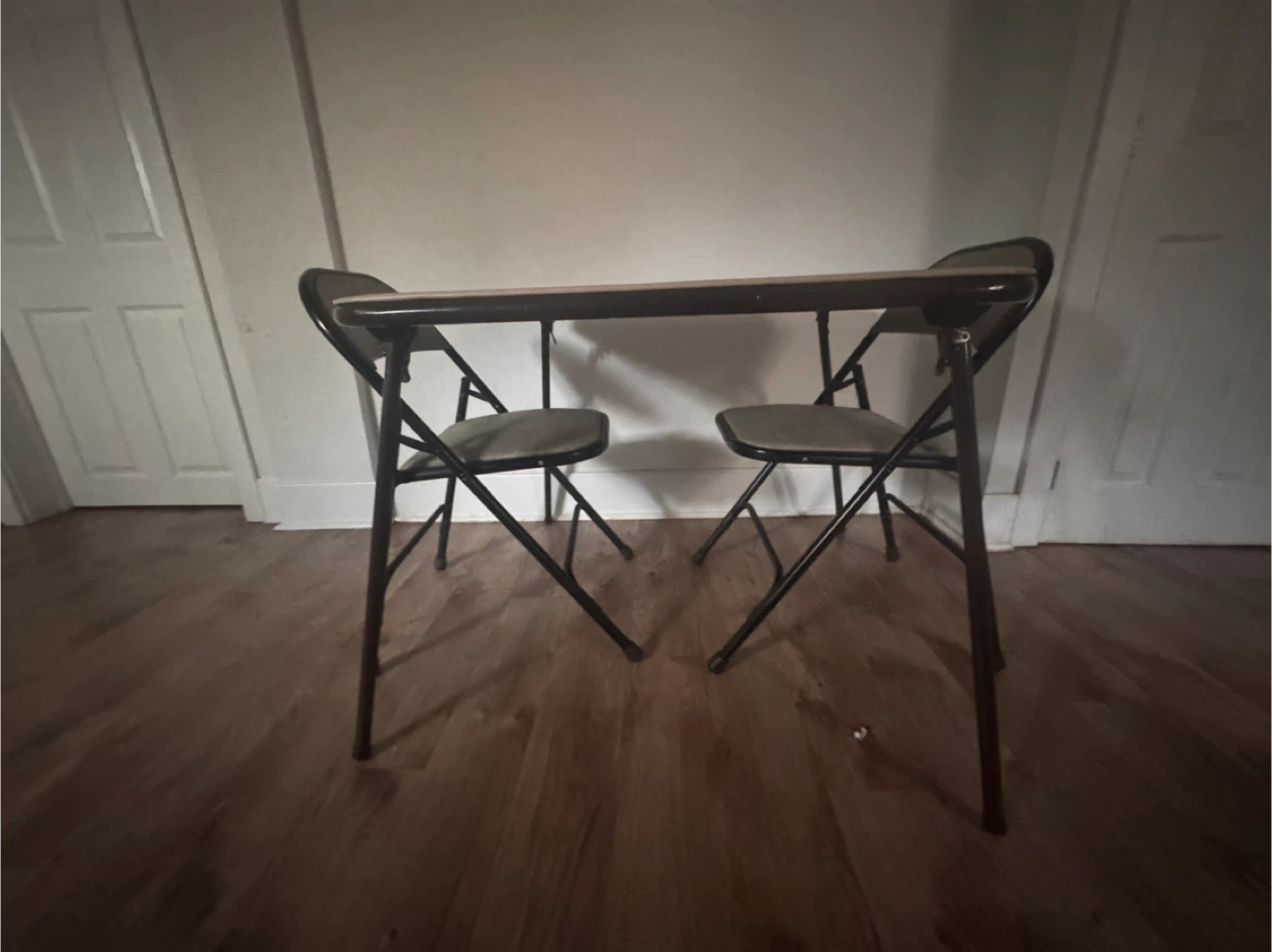 Selling a folding table and chairs set. Perfect for small spaces or temporary setups. In a smoke and pet free environment. Table comes with 4 chairs. Pick up or can be delivered for an additional fee