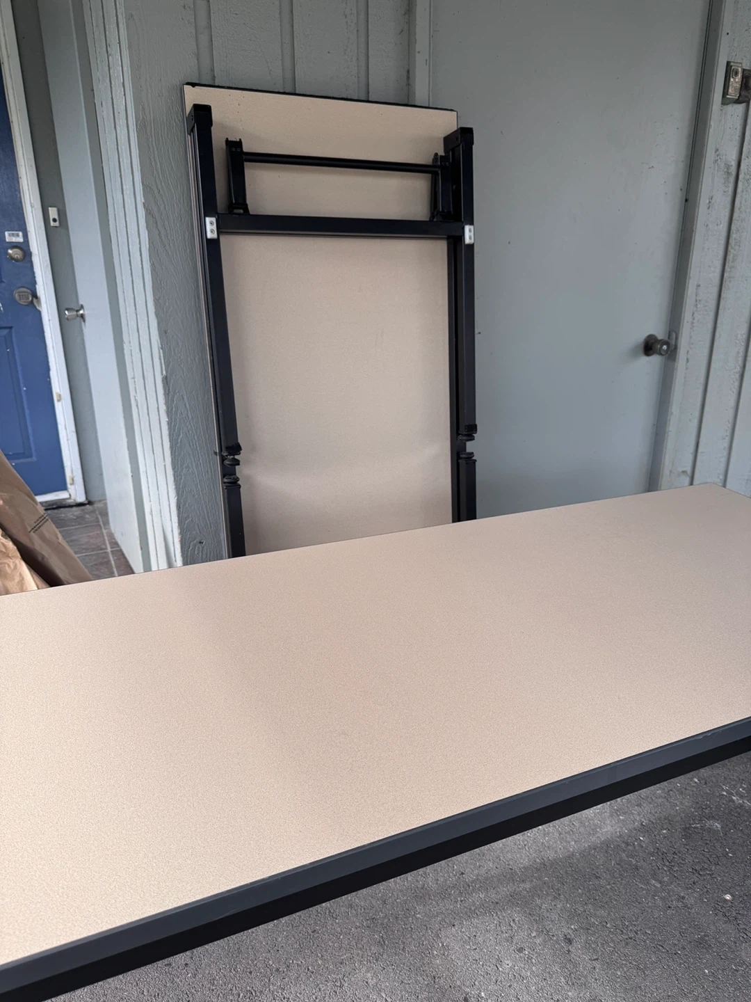 15Selling a folding table with a beige top and black frame. It's in great shape and perfect for extra space when you need it! Easy to fold and store when not in use. Ideal for parties, crafts, or just as an extra surface. $50 each!