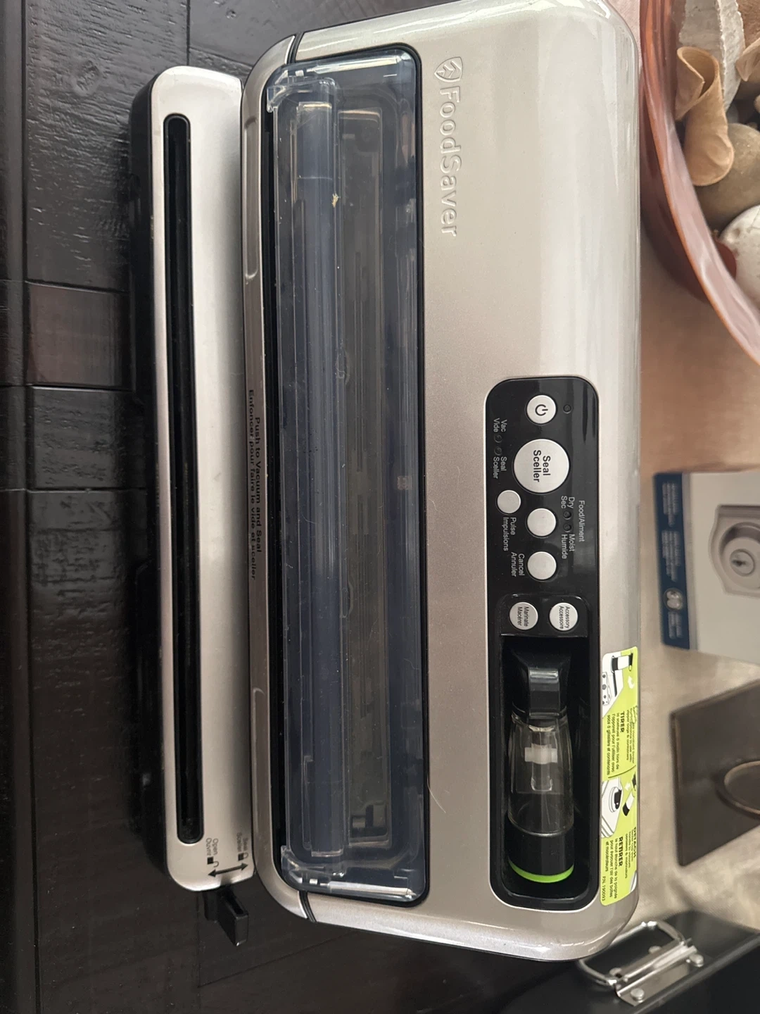 20Selling a FoodSaver vacuum sealer in good condition! It's perfect for preserving food and keeping it fresh for longer. It's easy to use and a great addition to any kitchen, the cutter for the bags came off during a move & hasn’t been found. Have been using scissors hence the cheap price