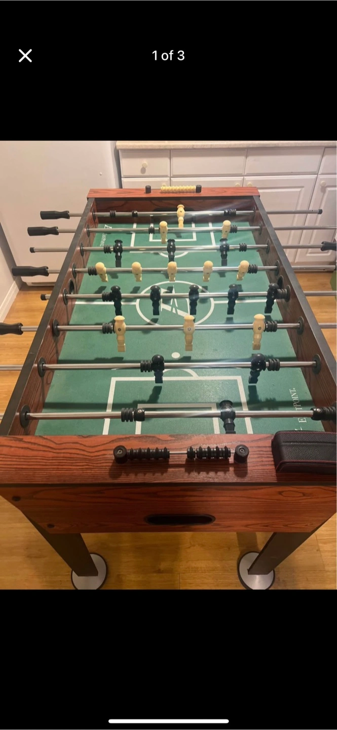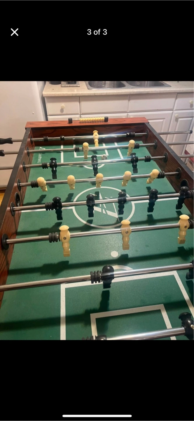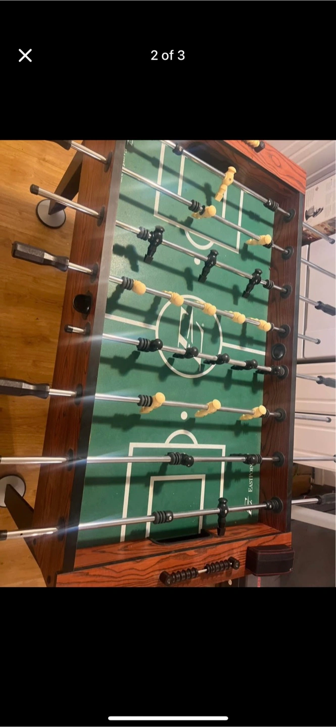 Selling a foosball table! It's in great shape and ready for some fun games. Perfect for a games room or family entertainment. Bought it from Canadian Tire.