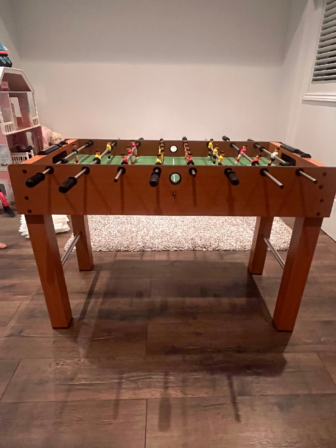 Selling a foosball table in good condition. It's perfect for family game nights or just having some fun with friends! It has a classic design and is ready for a new home
