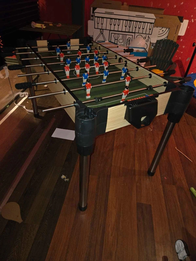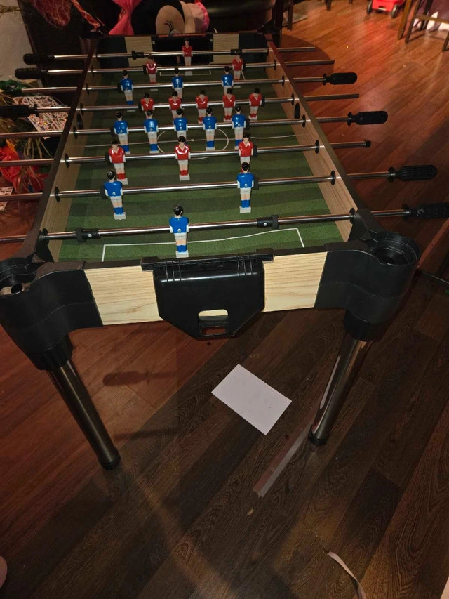 31Score big with this used foosball table! It's ready for some fast-paced action and friendly competition. A great piece of entertainment for kids and adults. Perfect for game rooms, basements, or anywhere you want to add a touch of fun. This foosball table is waiting for a new home where it can bring joy and excitement. Don't miss out on the chance to own this classic game! If the ad is still up, the foosball table is still available. Time to bring the arcade home!