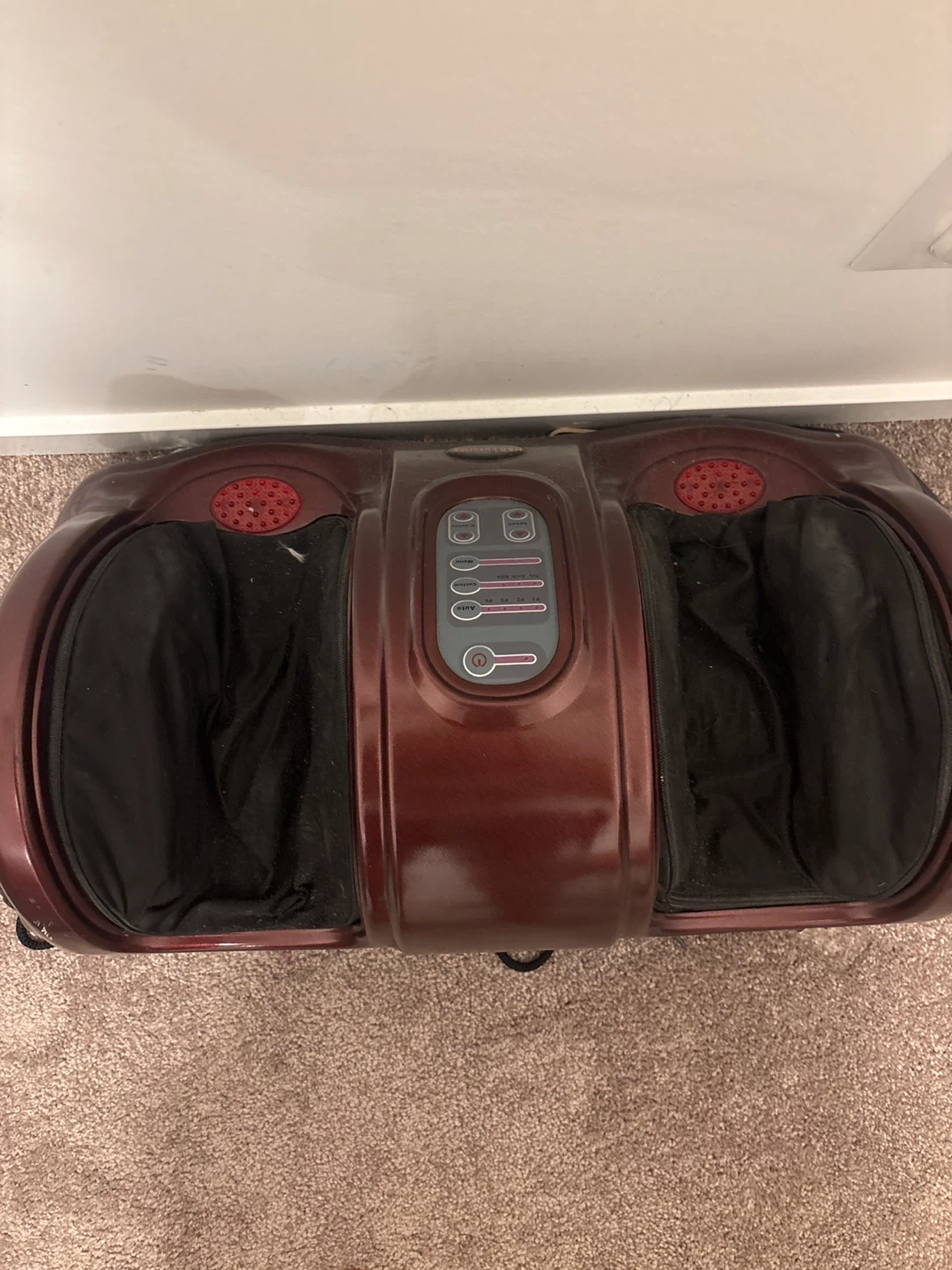 Selling a foot massager that's in good working condition! It's perfect for relaxing after a long day on your feet. It has different massage settings to suit your needs. It's a great way to treat yourself or someone you love