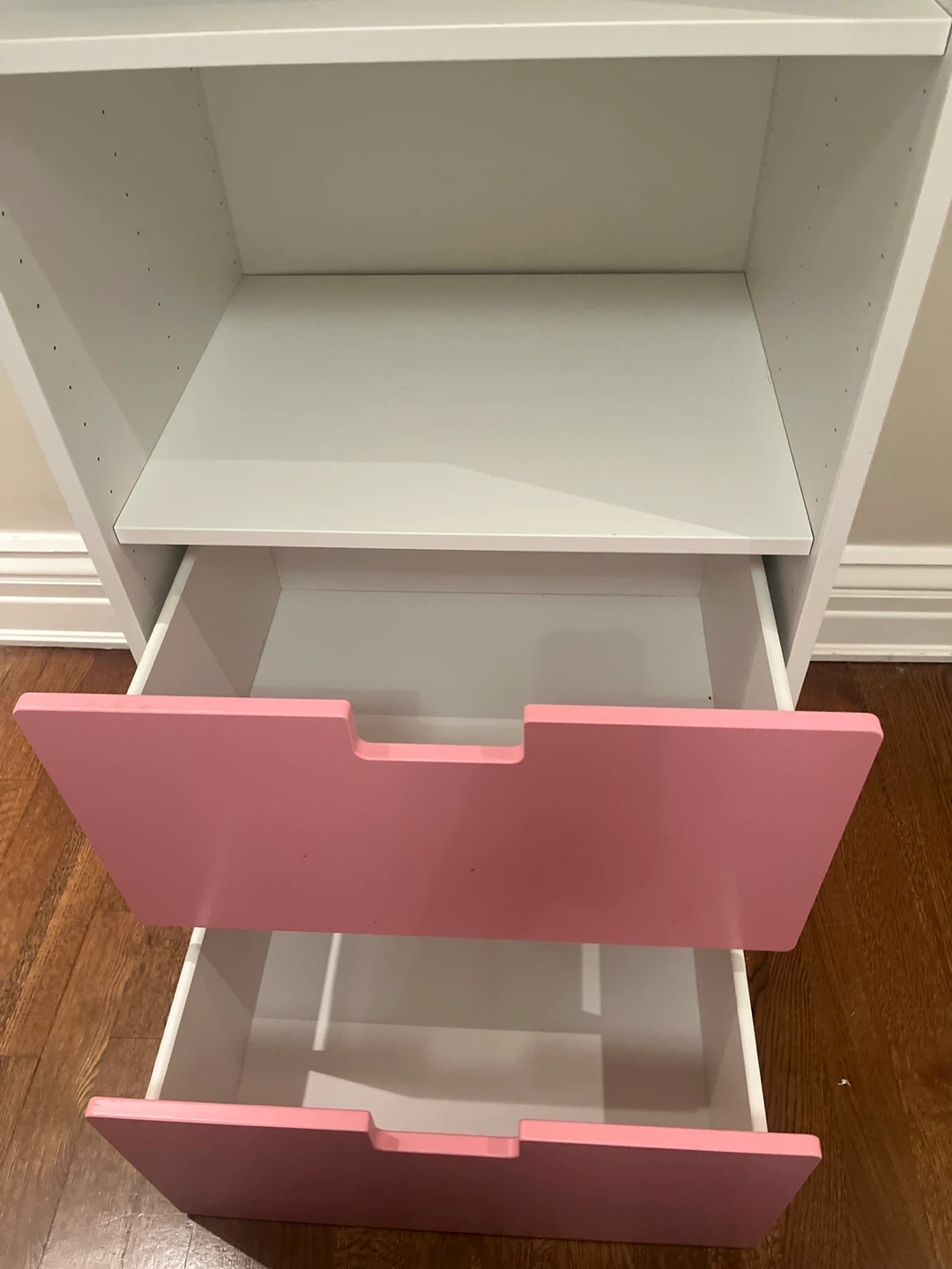 This IKEA storage unit has two drawers and two shelves