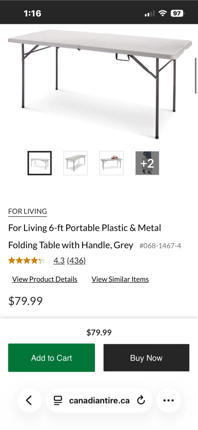 Selling a For Living 6-ft portable folding table in grey. It's a great table and folds up easily for storage when not in use. Originally bought for $79.99 at Canadian Tire