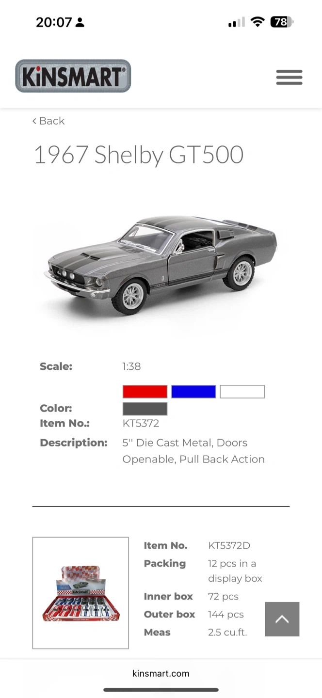 36Model: 1967 Shelby GT500 Scale: 1:38 (approx. 5″ length) Features: Doors open, pull-back action drive Authentic licensed design — Shelby / Ford trademarks used under license Price: $15 Pickup location: city place down town Toronto — by Spadina and Fort York Blvd Feel free to message me for more photos or details.
