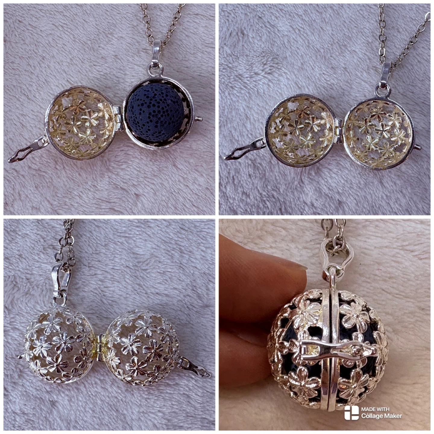aromatherapy, necklace, diffuser, essential, oil, lava, stone, floral, locket, silver, wellness, jewelry, bohemian, holistic, meditation