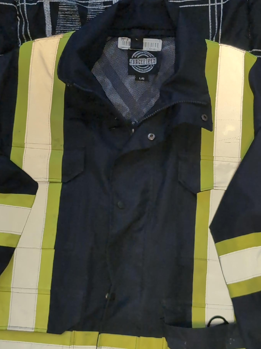 70Selling a Forcefield safety jacket in size Large. It's black with reflective yellow stripes.