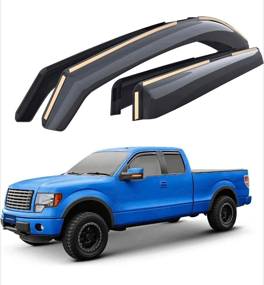5New Goodyear shatterproof in-channel window deflectors for 2004-2014 Ford F-150 SuperCab models. These premium side window deflectors let you roll your window down in rain, high winds, snow and ice. These window vent visors keep you from getting wet while enjoying fresh air. Made of high quality, durable shatterproof material that won’t crack, break, or chip. In-channel installation provides a perfect fit and sleek look. They are water resistant and durable in all weather conditions. They will not fall off on the highway. The color is chosen for sun protection and goes well with all vehicle styles and colors. The vent shade stays rich year after year. These accessories will enhance the value of your truck as well as your daily enjoyment and comfort. Note: Only fits SuperCab models where the rear door window cannot be opened.