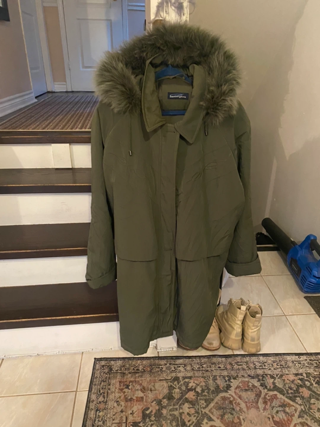 147Selling a Forecaster of Boston winter coat in a lovely olive green colour. It's in great condition and perfect for the cold weather! It features a warm faux fur trim around the hood.