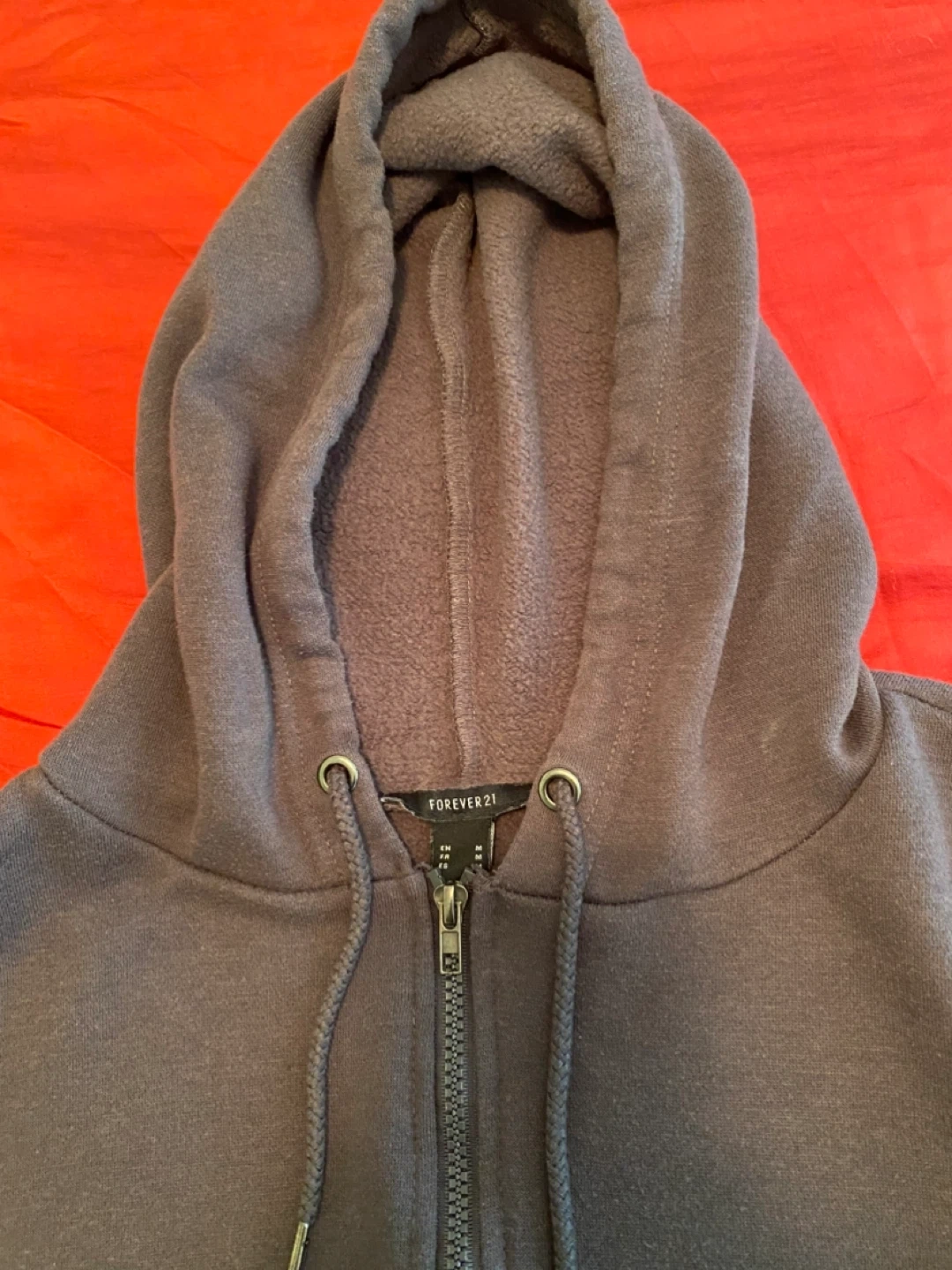 Forever 21 Brown Zip Hoodie (M) – $18 Comfy zip-up with light pilling, no stains/tears, perfect for everyday layering!