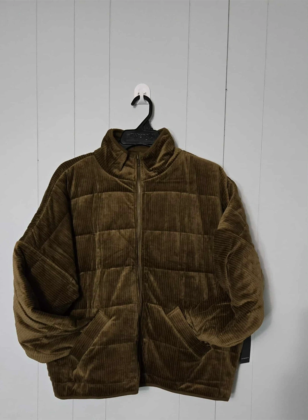 74Selling a Forever 21 corduroy puffer jacket in a lovely brown colour! It's a size large and has a comfy, stylish look. Perfect for adding a bit of warmth and texture to your outfit