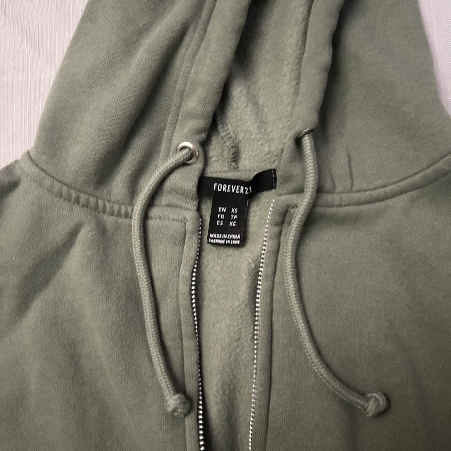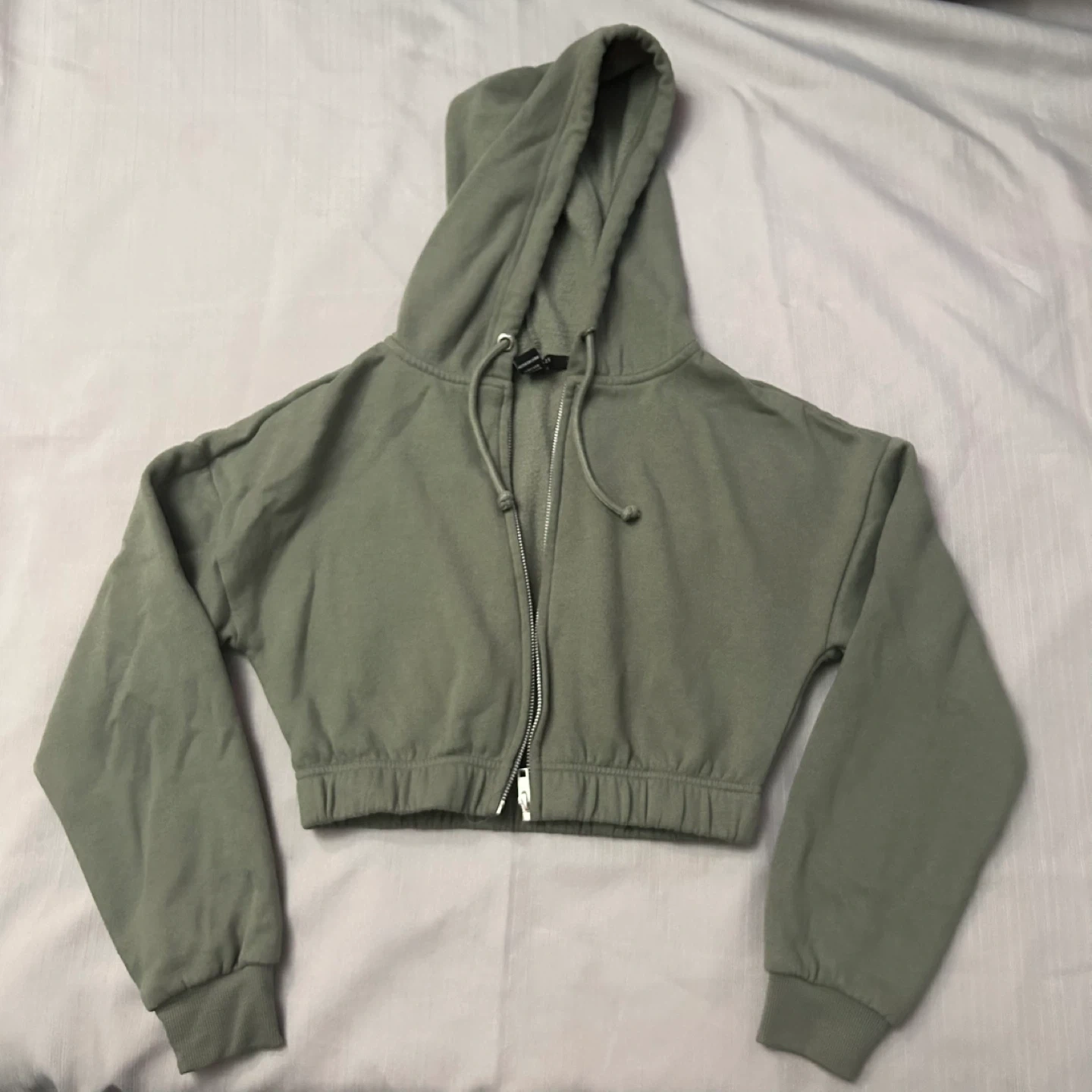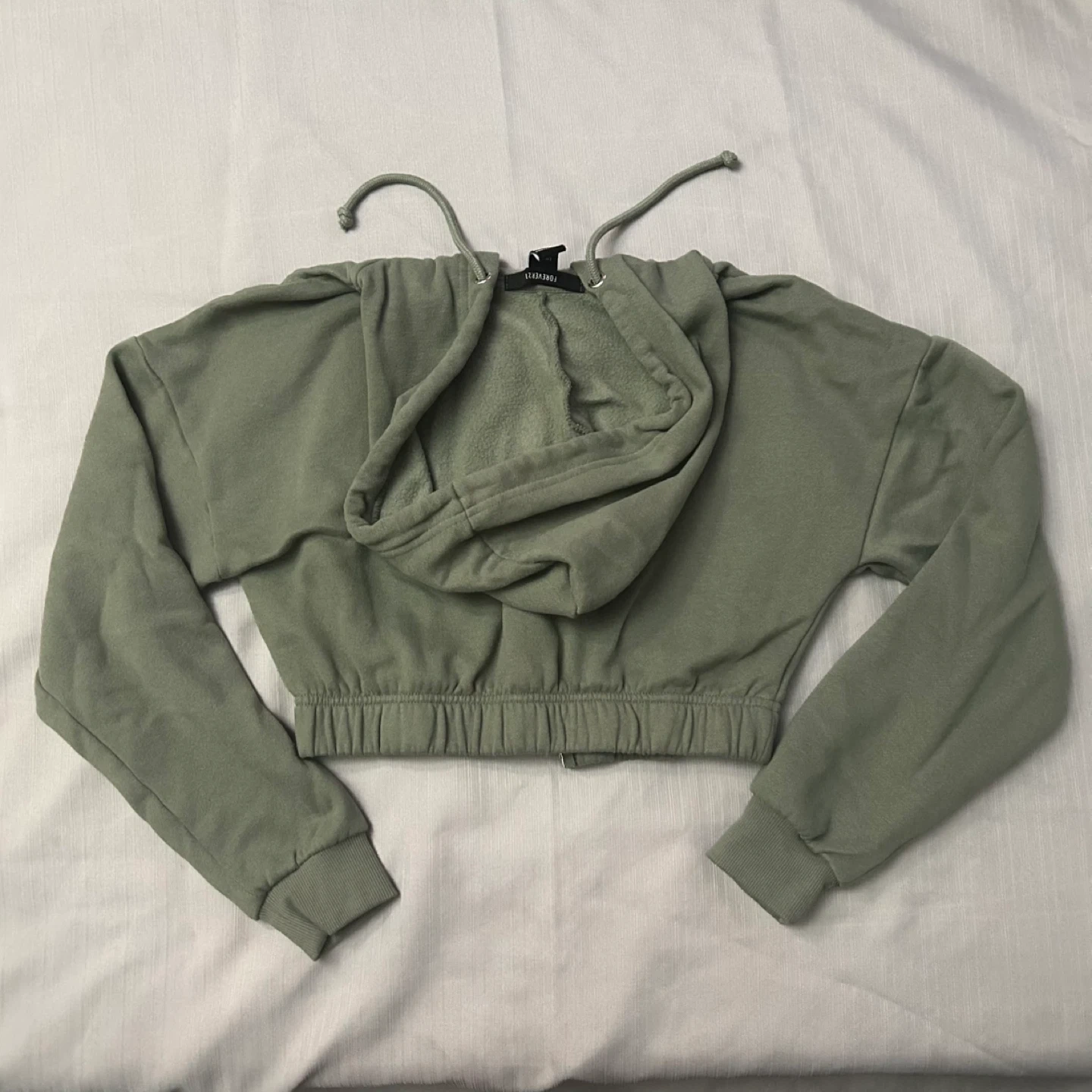 89Selling a cute Forever 21 crop zip-up hoodie! It's a lovely sage green colour and in great condition. Perfect for layering or wearing on its own!