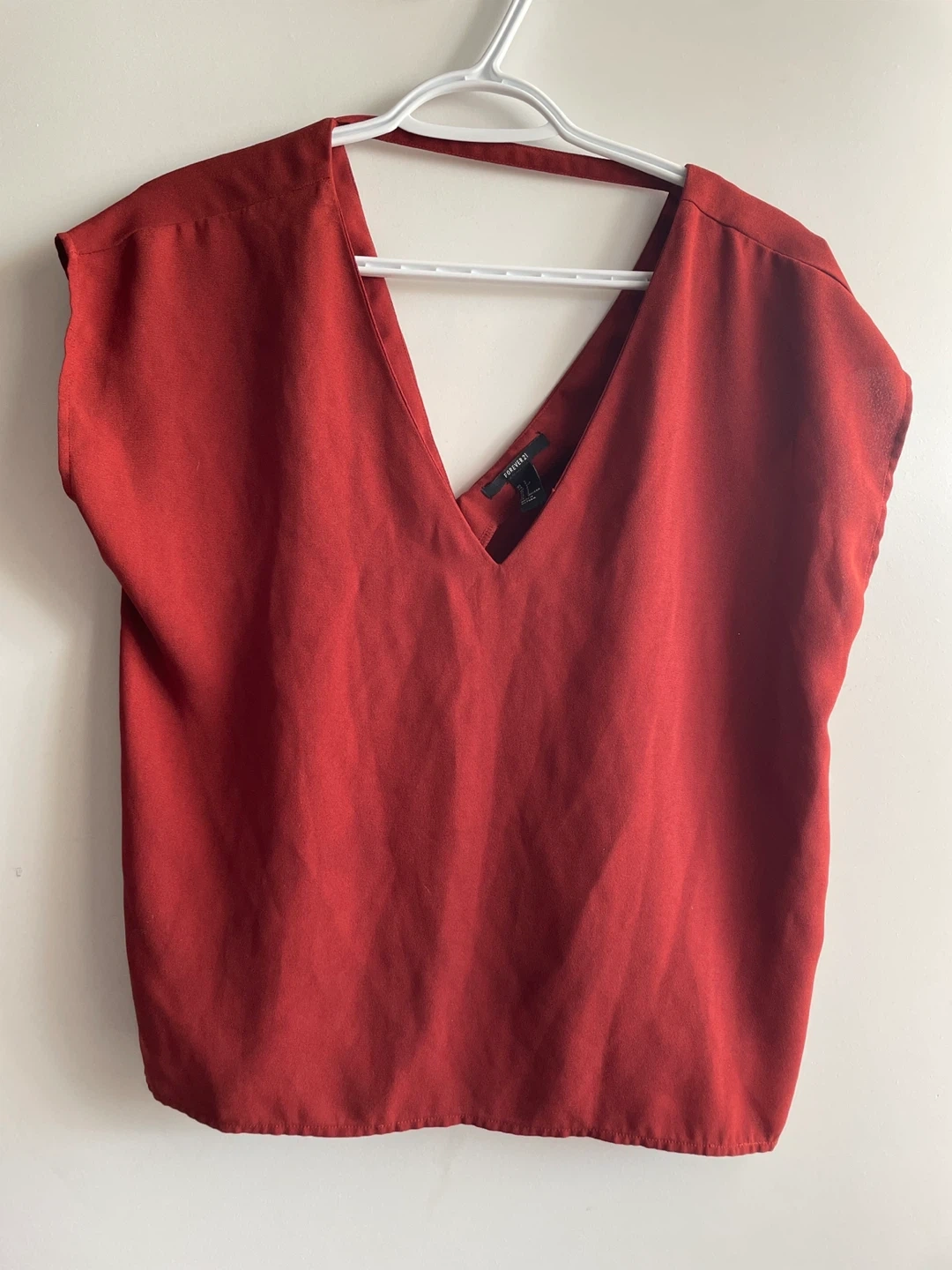 607A rust-coloured blouse from Forever 21 in size small! It's in great condition and ready for a new home. Perfect for adding a pop of colour to your wardrobe