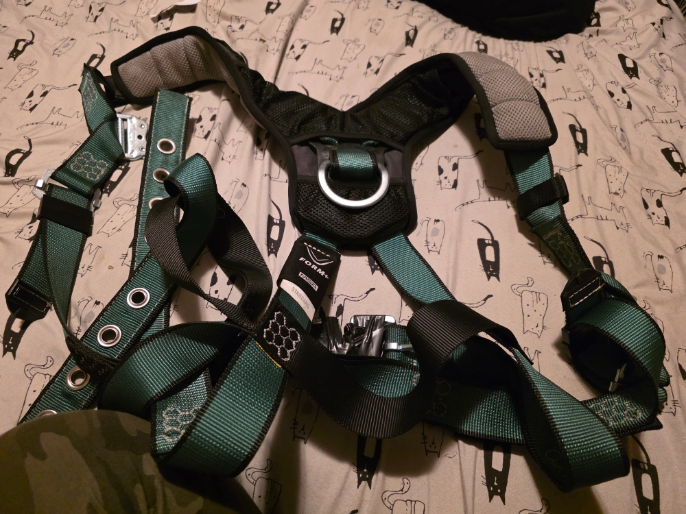 Selling a Form+ safety harness. It appears to be in good condition and ready for use. It has a combination of black and green straps. Perfect for anyone needing a reliable safety harness for work or other activities