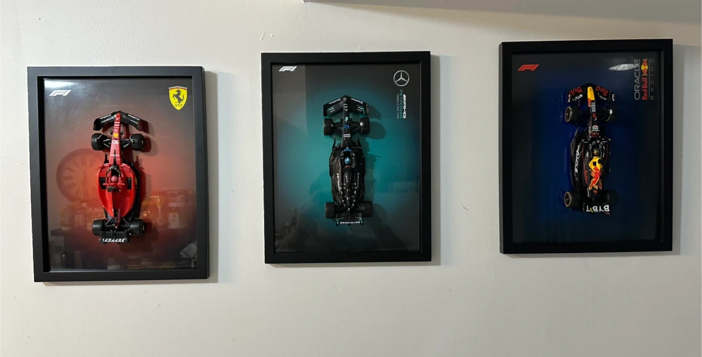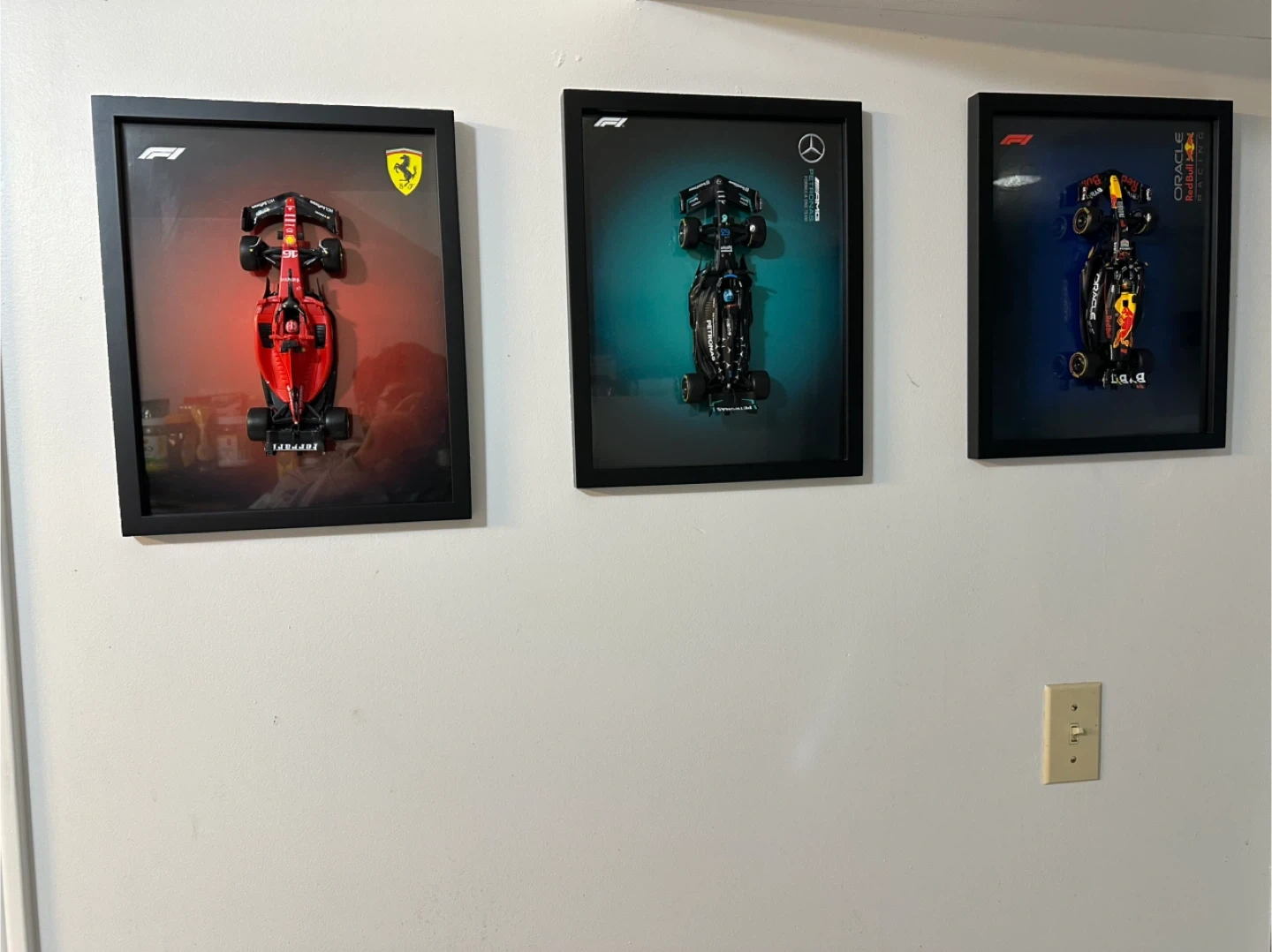 10Selling a set of framed Formula 1 car posters! There's a Ferrari, a Mercedes, and a Red Bull car. All brand new Frame size: 12 inch by 15 inch $130 for one $230 for two $330 for three