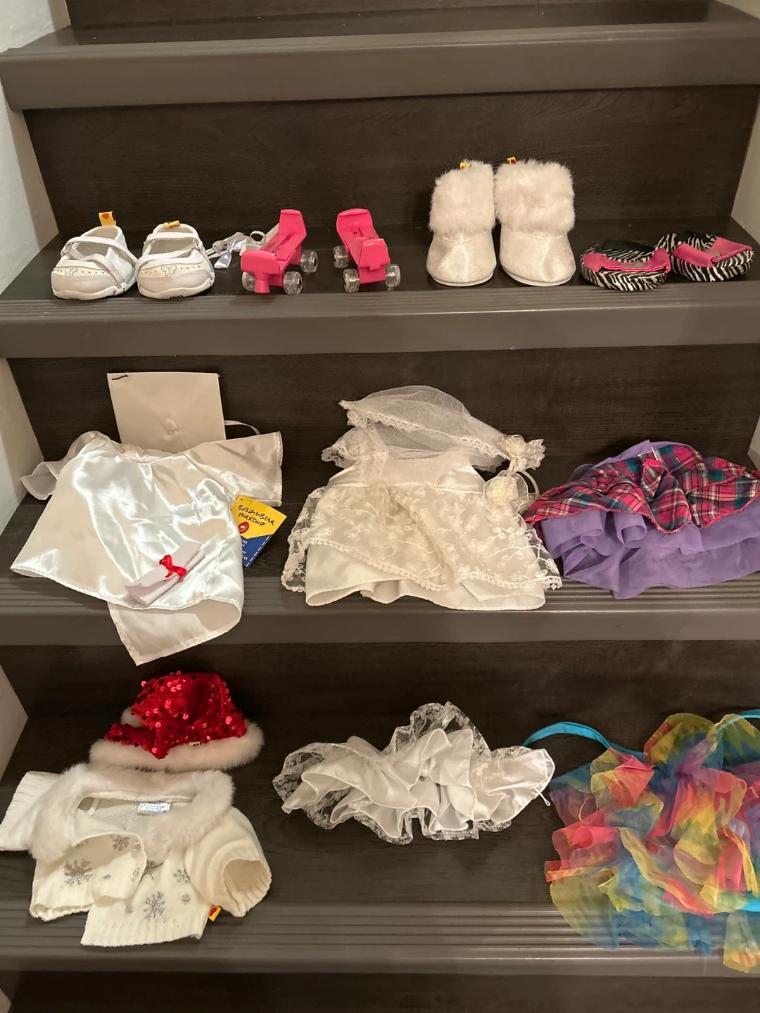 Selling a collection of Build-A-Bear clothes and accessories! Includes a graduation outfit, a winter outfit, a wedding dress, and various pairs of shoes including roller skates. Perfect for dressing up your furry friend! Items were kept in storage boxes mostly so are in excellent condition. Smoke free and pet free home. Pickup is near McMaster hospital.