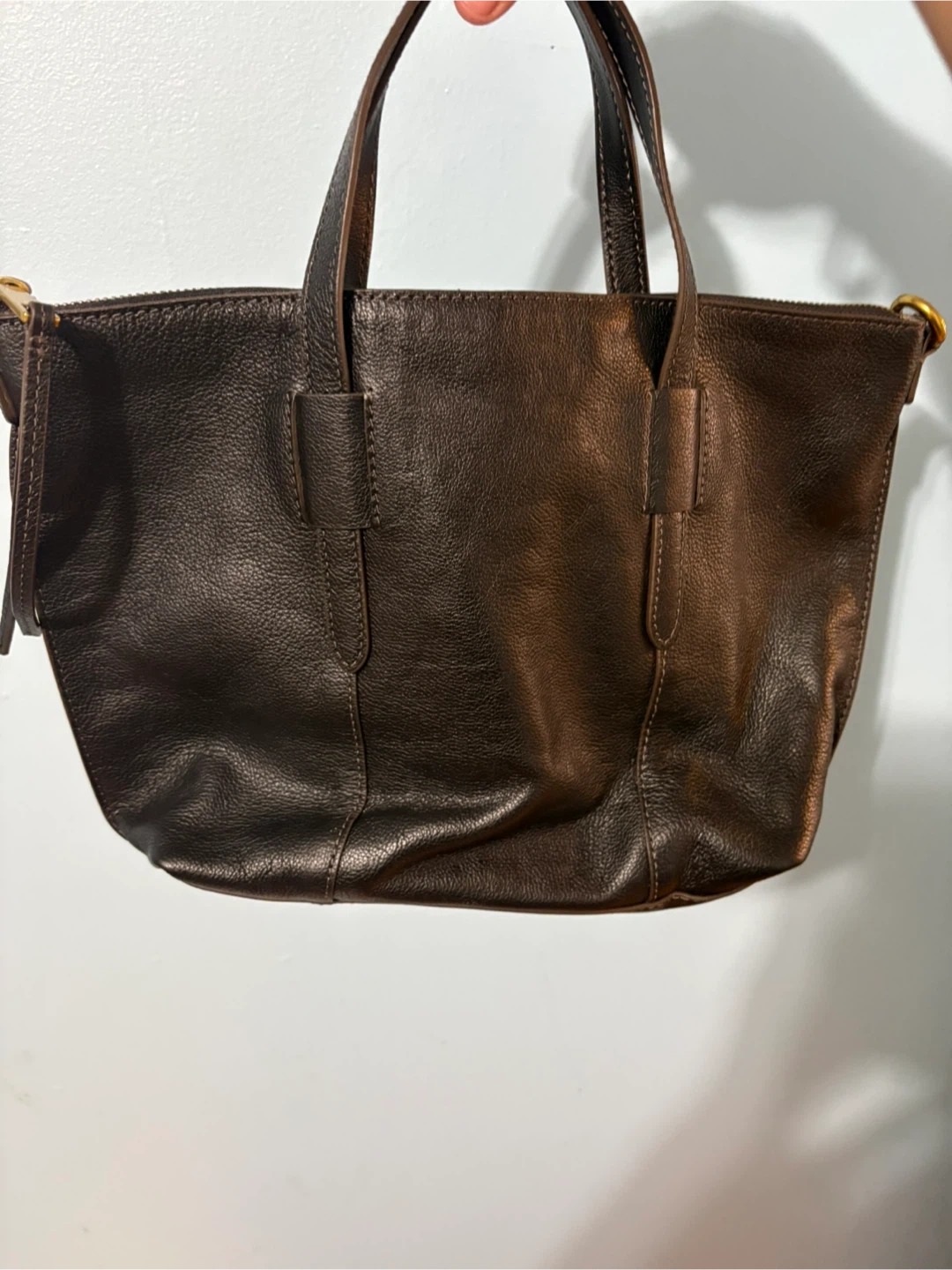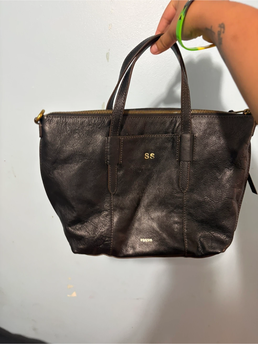 Gently used Fossil handbag in brown leather. It has some signs of wear, but still has lots of life left! Perfect for everyday use