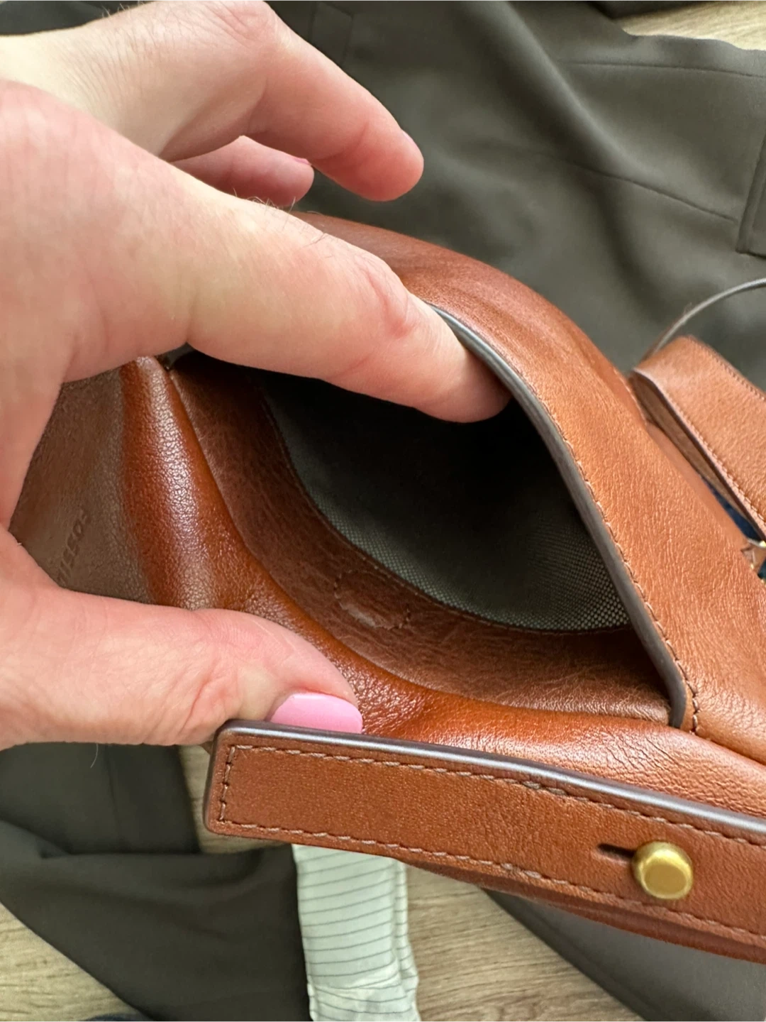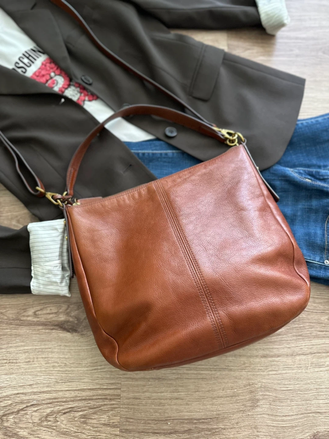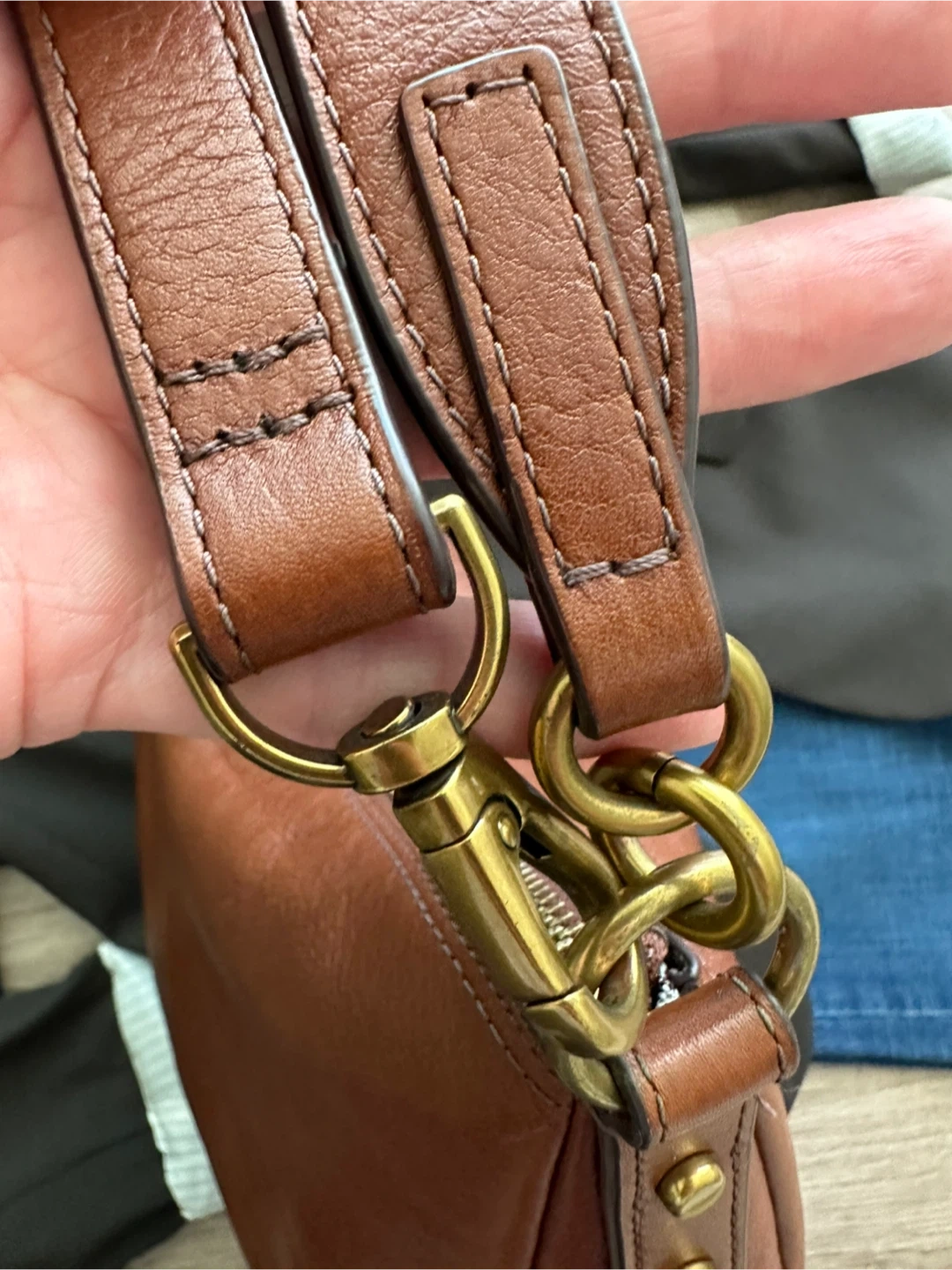 65A lovely brown leather handbag from Fossil! This bag is in great condition and ready for a new home. It's a stylish and practical accessory for everyday use. The leather is soft and supple. The bag also features a signature Fossil key charm.
