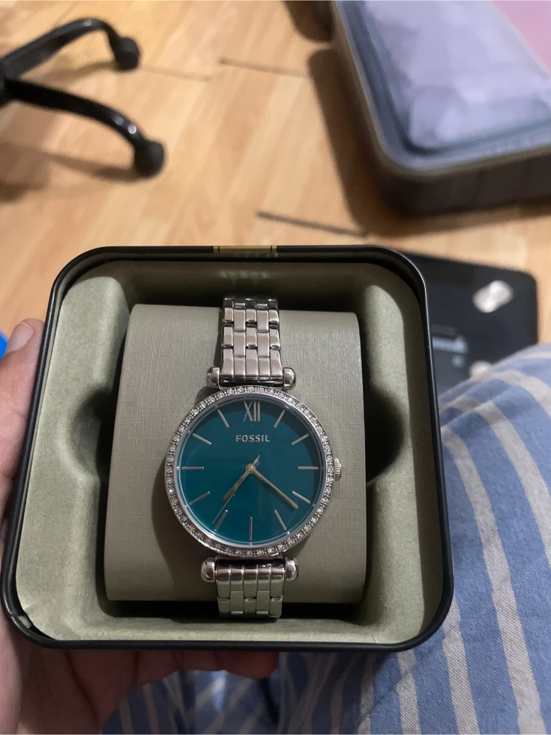 Selling a lovely Fossil ladies' watch! It has a silver band and a beautiful face. Comes with the original box, so it's perfect for gifting or treating yourself