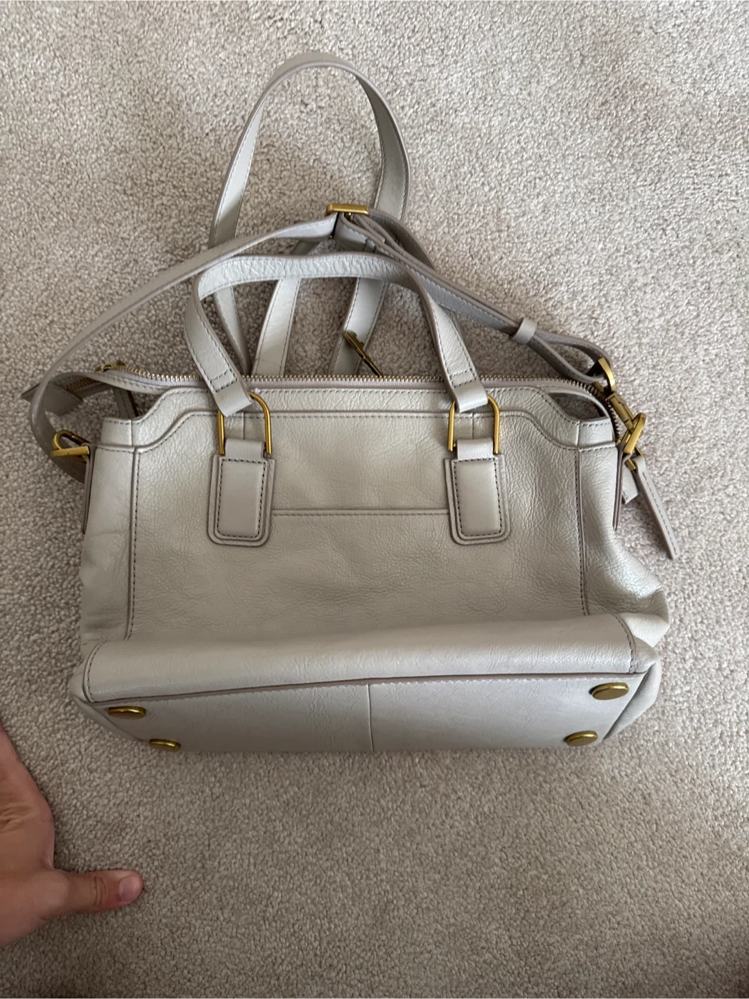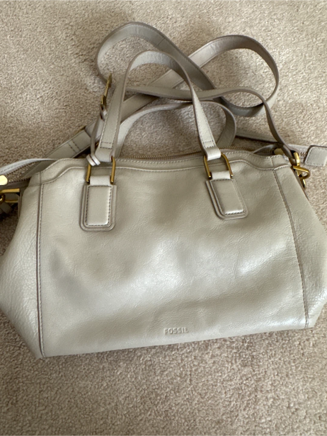 Gently used Fossil satchel handbag in a lovely neutral colour! It's a great size for everyday use and has both handles and a shoulder strap. The leather is soft and supple, showing minimal signs of wear. Perfect for adding a touch of classic style to your outfit