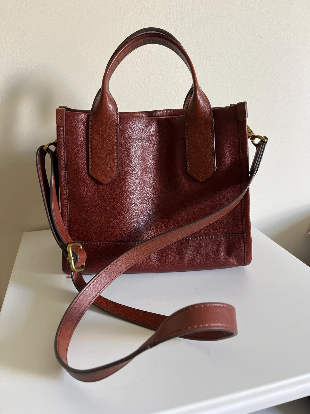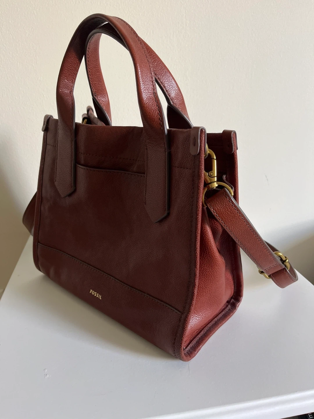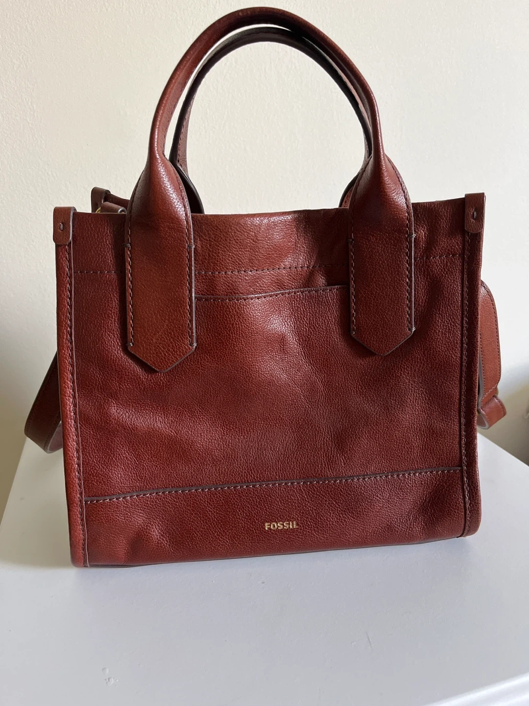 Here's a stylish brown leather tote bag from Fossil! It's perfect for everyday use and has a classic look that goes with everything