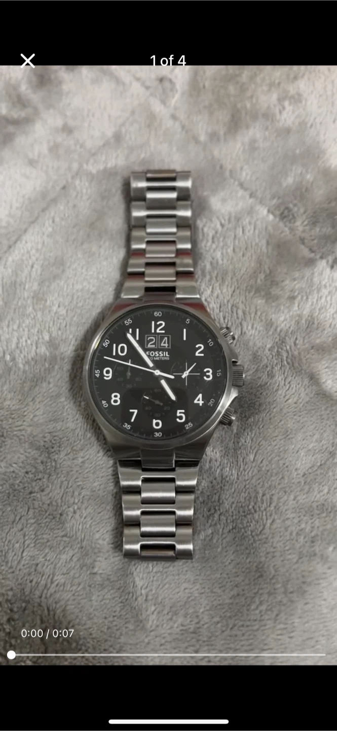 10Selling a Fossil men's watch with a stainless steel band. The watch features a black dial with clear numerals and a 24-hour display. It's a stylish and functional timepiece for everyday wear