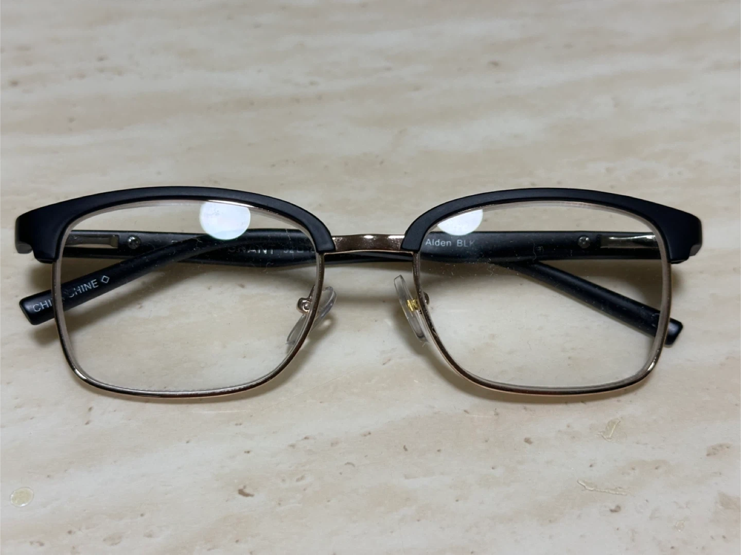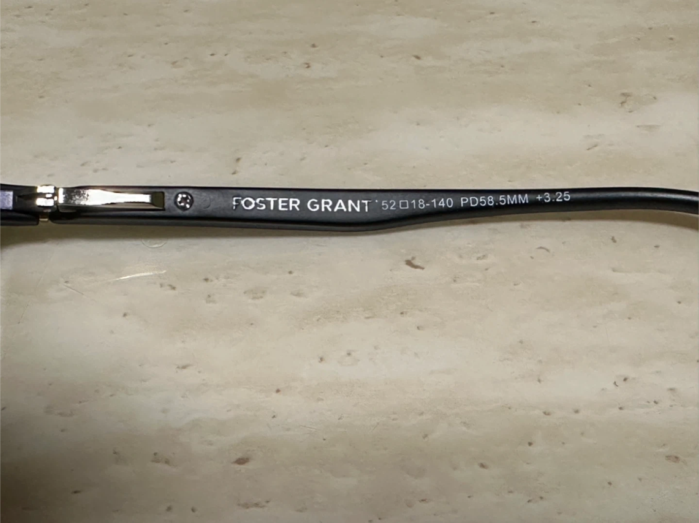 59Selling a pair of Foster Grant Alden glasses in black plastic arms and gold-toned frame PD58.5MM +3.25 They're new, unworn, no scratches on lens, no rust on frame Please double check your prescription before coming to purchase
