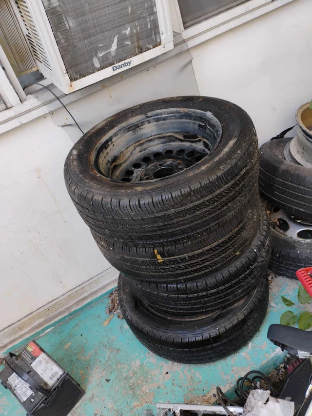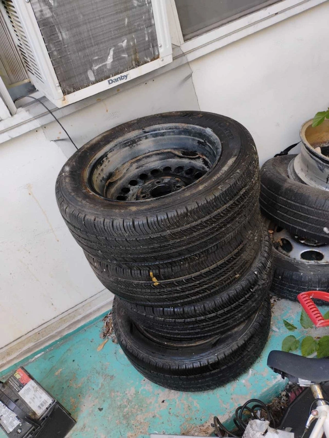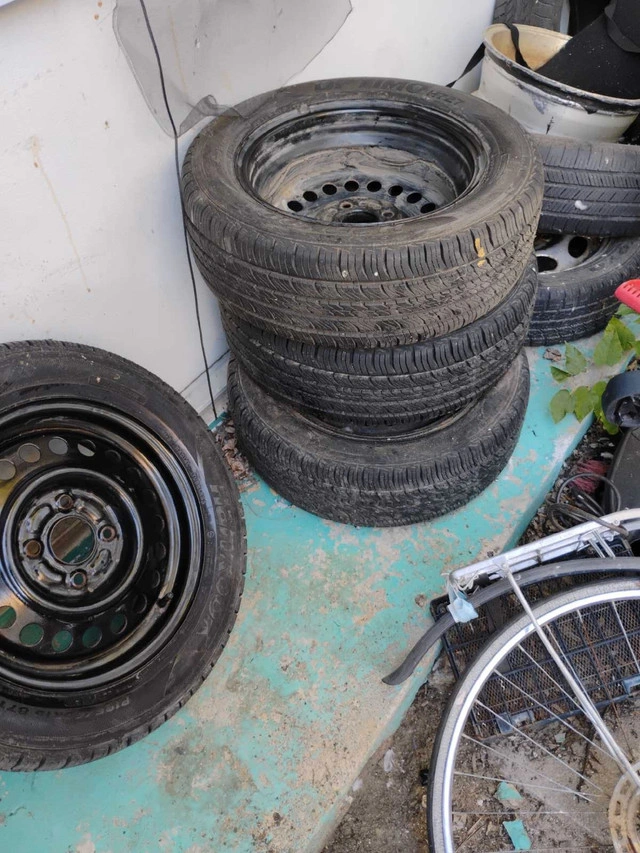 10Four almost new all season tires (summer fall and winter with steel rim) eliminating seasonal wheel and tire change and associated costs or easily swap tires with their rimsted good tread like new. All seasons with steel rims. Asking 260 or best offer. For Sale By: Owner