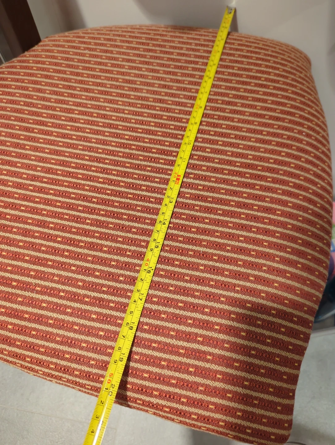 95Here are four lovely wooden dining chairs with a striped seat. The solid wood has a nice dark finish and the seat is very firmly upholstered, almost like new. Price is PER chair. Size in last photos.