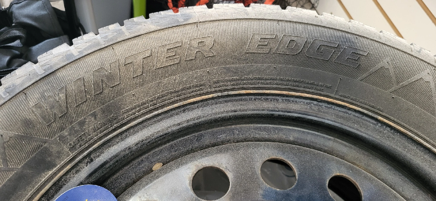 Selling four used Winter Edge tire mounted on a rim. The tire size is 235/55R17. It shows signs of wear, but still has some life left in it for winter driving