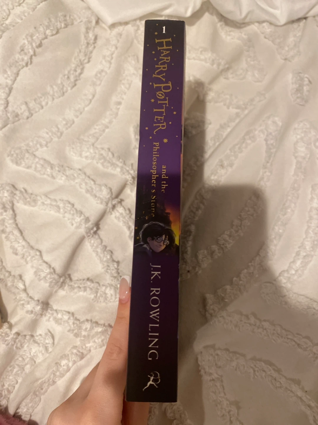 This is Harry Potter and the Philosopher's Stone, written by J.K. Rowling. It's a paperback edition. The story follows Harry's discovery of his wizarding heritage.