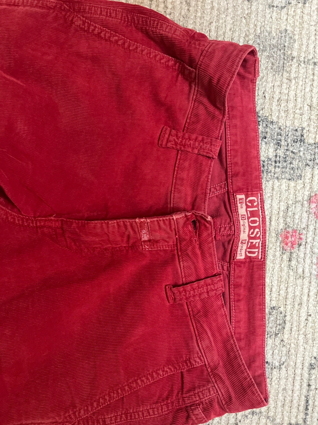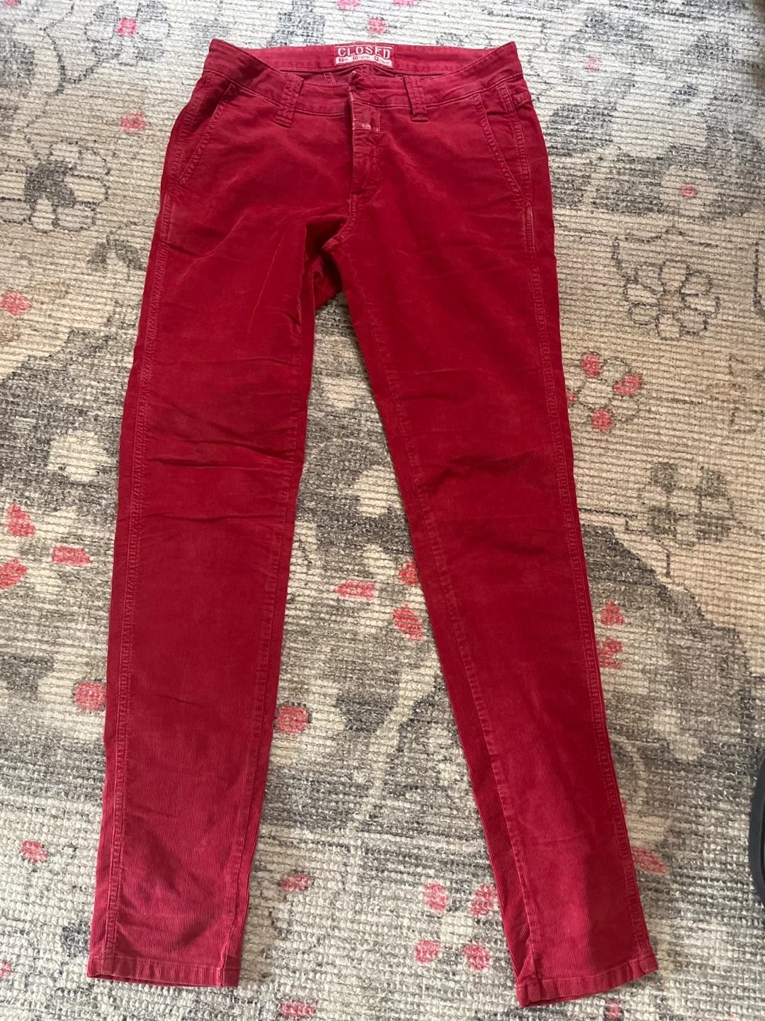 Red corduroy pants from CLOSED. These pants are made from corduroy material. They're a stylish choice for casual wear.