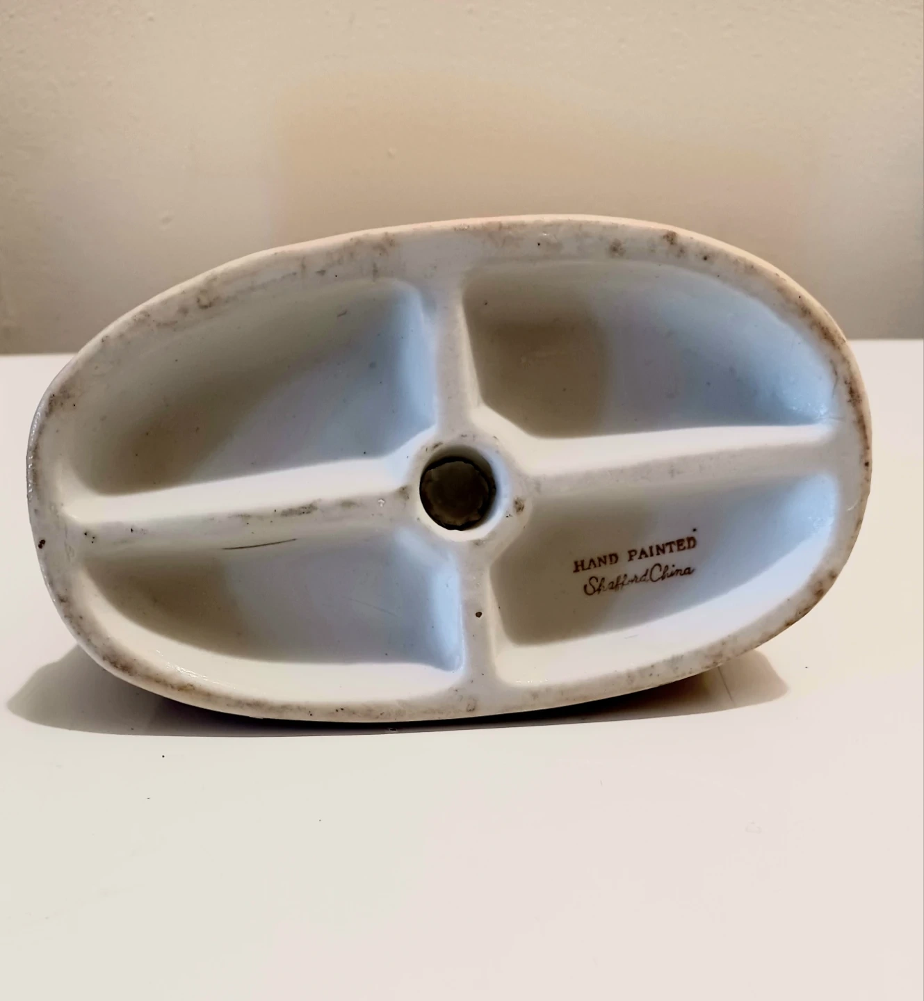 * Authentic marked on the base with a stamp that reads "Shafford China " & "Hand Painted".
