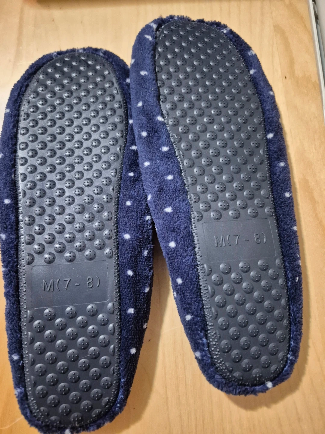 Blue Polka Dot Slippers - Size M (7-8)