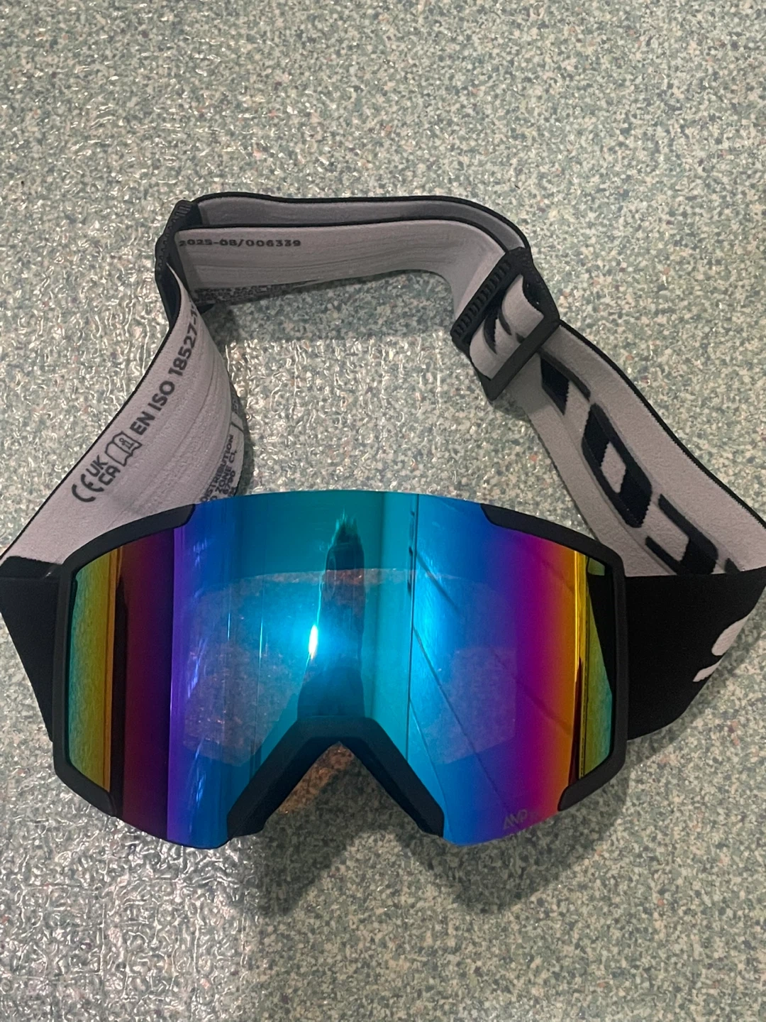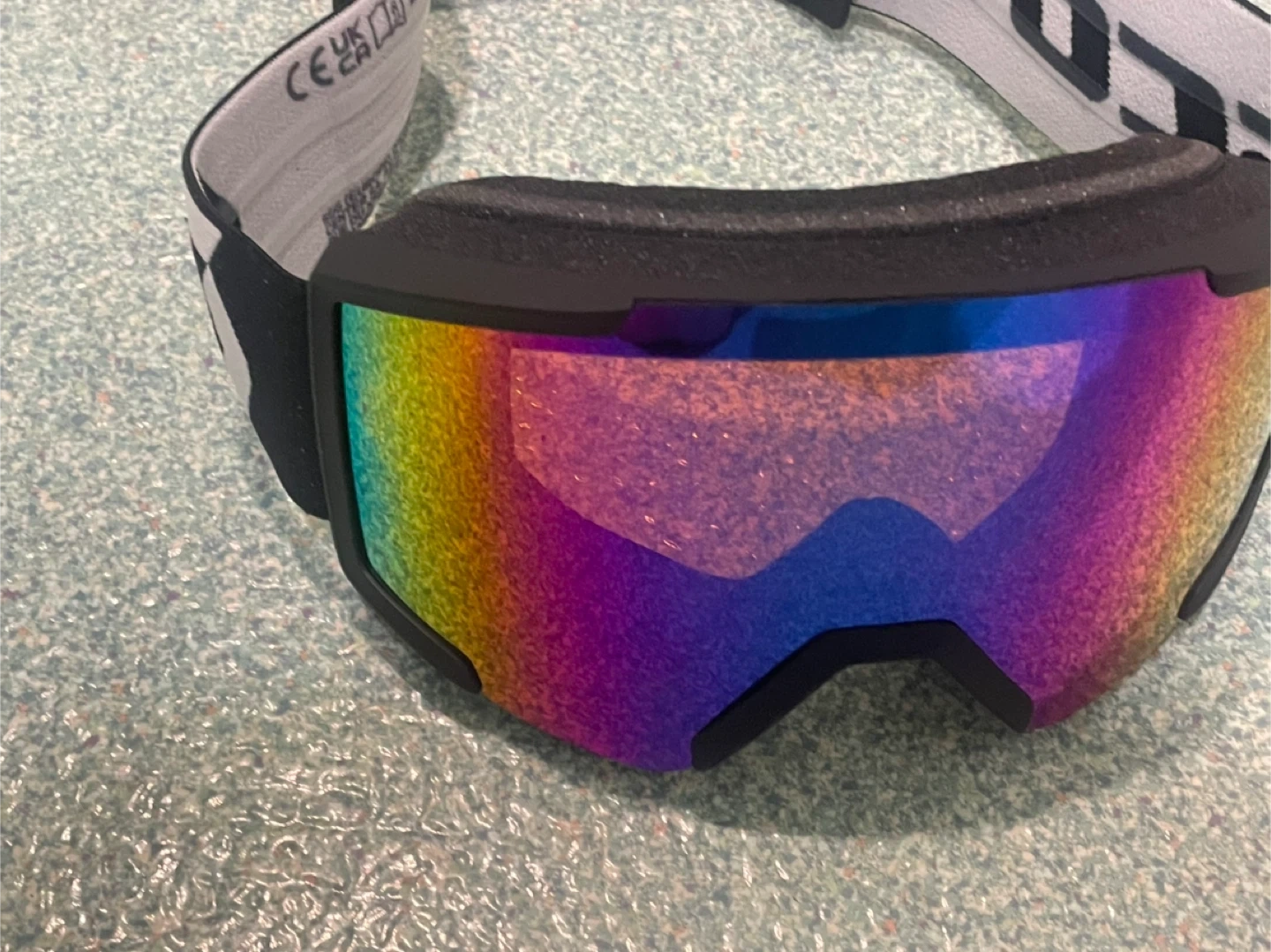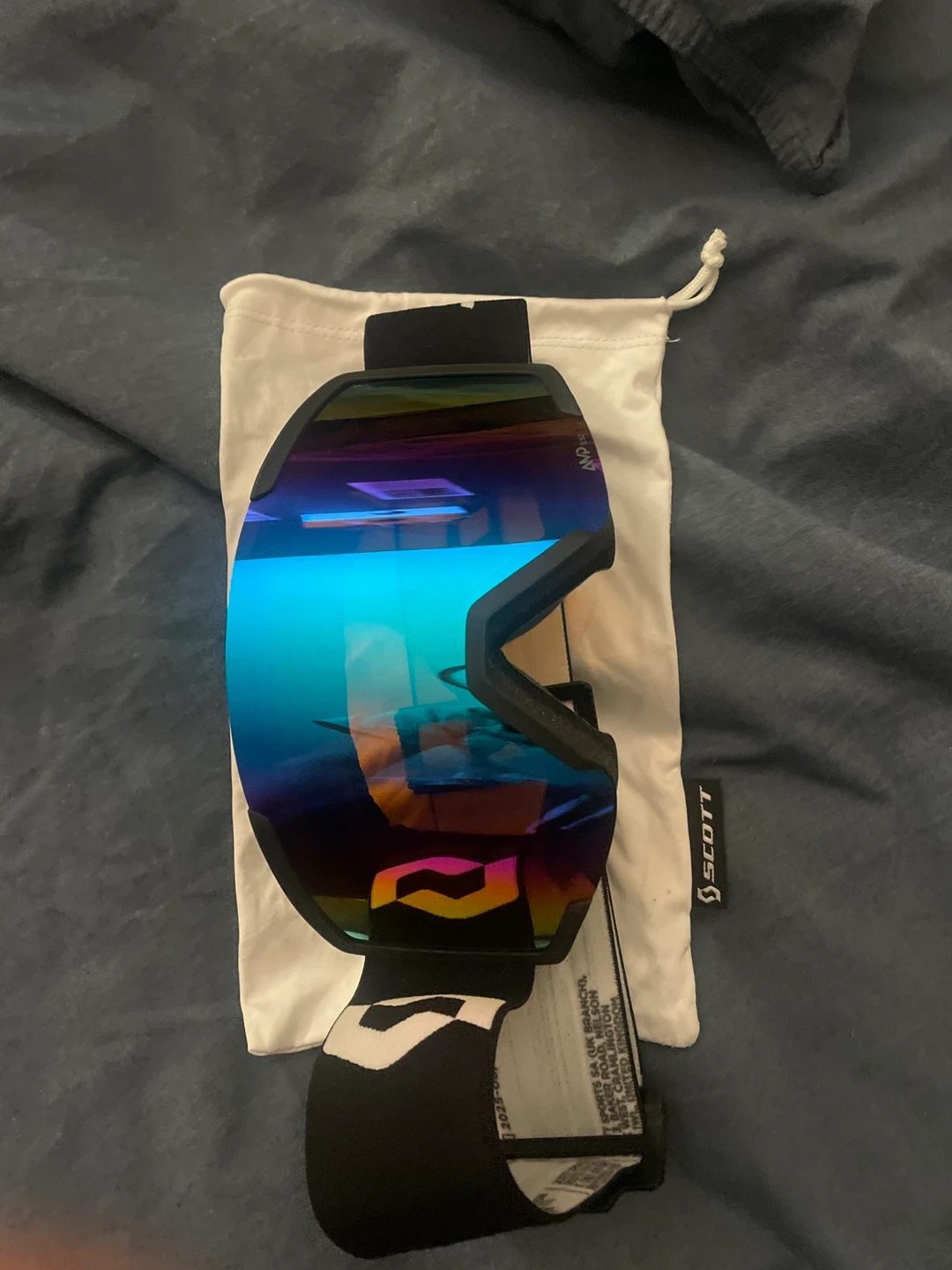 These Scott ski goggles feature a durable frame and a multi-coloured, reflective lens. The adjustable strap ensures a secure fit for various activities. They're built for clear vision in different snow conditions.