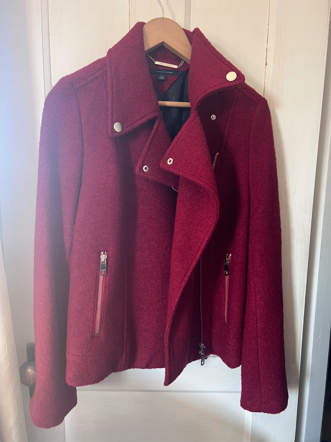 Buy & SellTommy Hilfiger Red Moto Jacket - Size 12Tommy Hilfiger Red Moto Jacket - Size 12$80Tommy Hilfiger red textured moto jacket. Size 12. Features silver-tone hardware and a full zip front closure. Great for layering!ConditionNewSize12BrandTommy HWHERE TO MEETApolloView MapSELLERverifiedAnnaCampbellford994121 reviews0 chats·0 favorites·13 viewsSEND CHAT TO SELLERHi Anna! I’m interested in your listing.Hi Anna! I’m interested in your listing.Get the Karrot app to chatSign In to chat