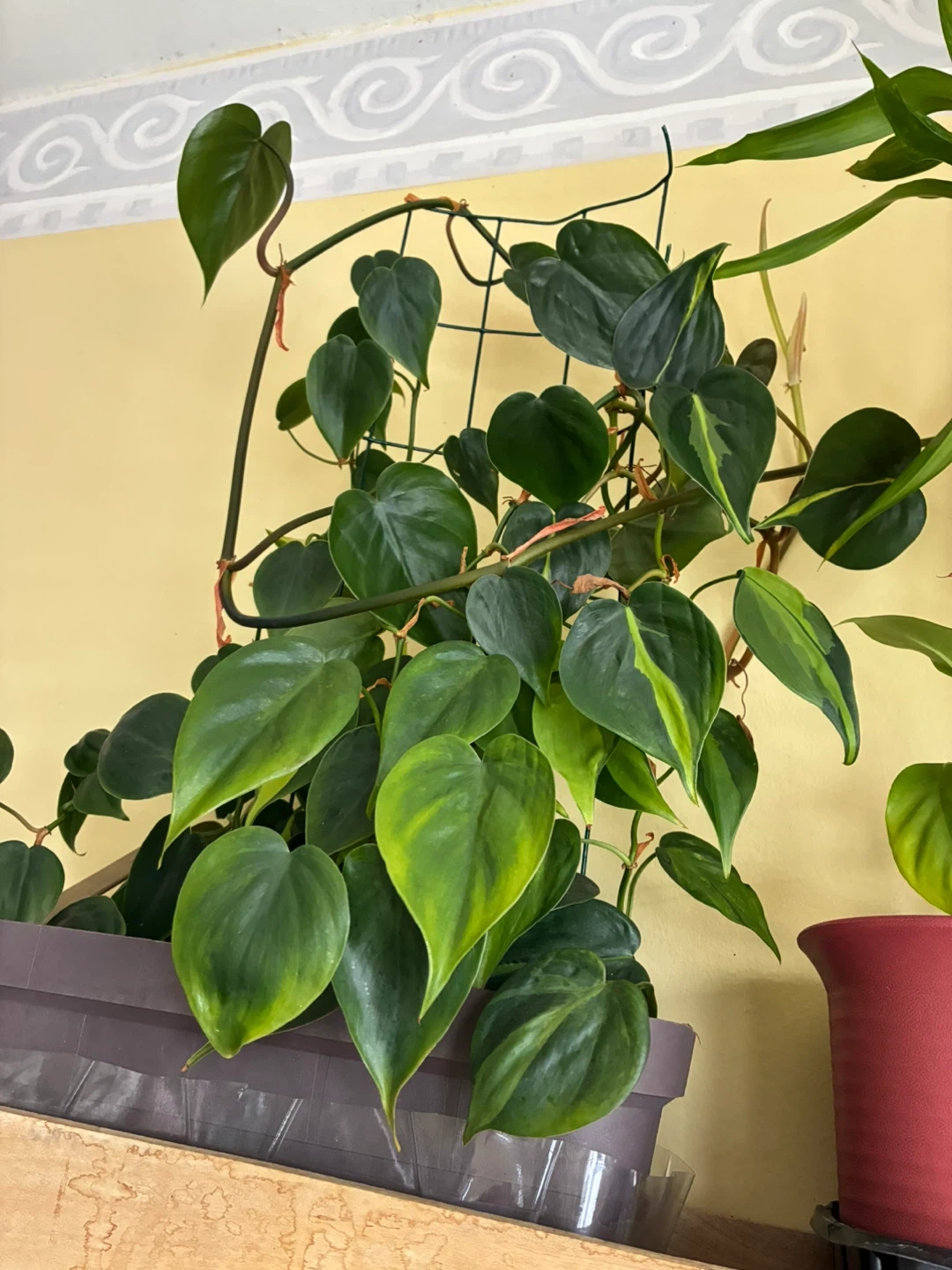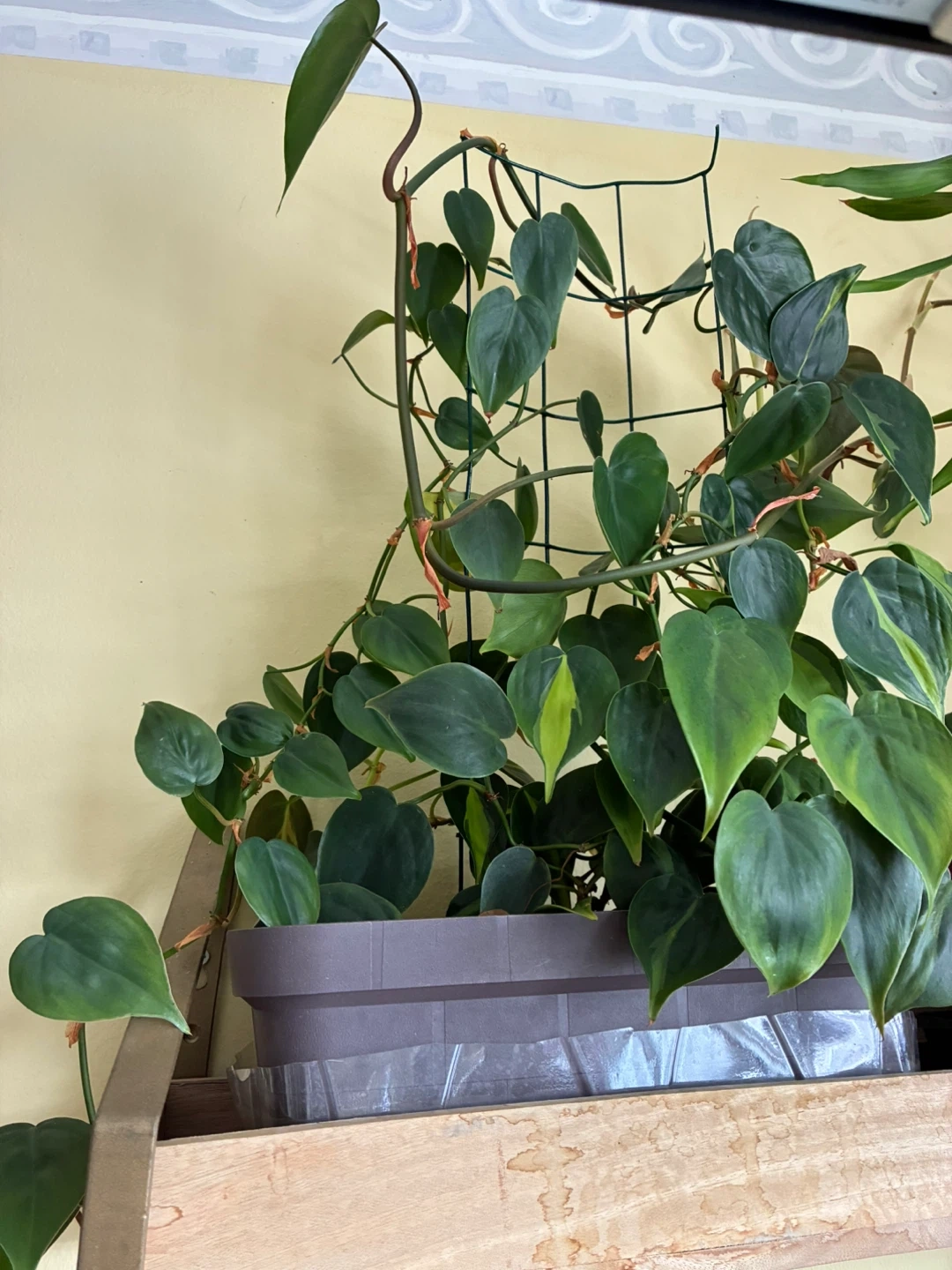 A beautiful, established Heartleaf Philodendron plant with lush green leaves. It's currently growing and vining on a support structure. This plant adds a natural touch to any indoor space!