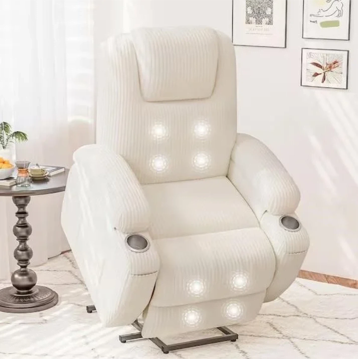 Corduroy Fabric Recliner Chair with Massage and Cup Holders