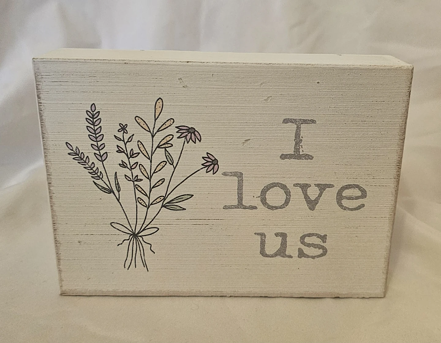 Quill to Paper by Sixtrees Floral "I Love Us" Wood Decor Plaque