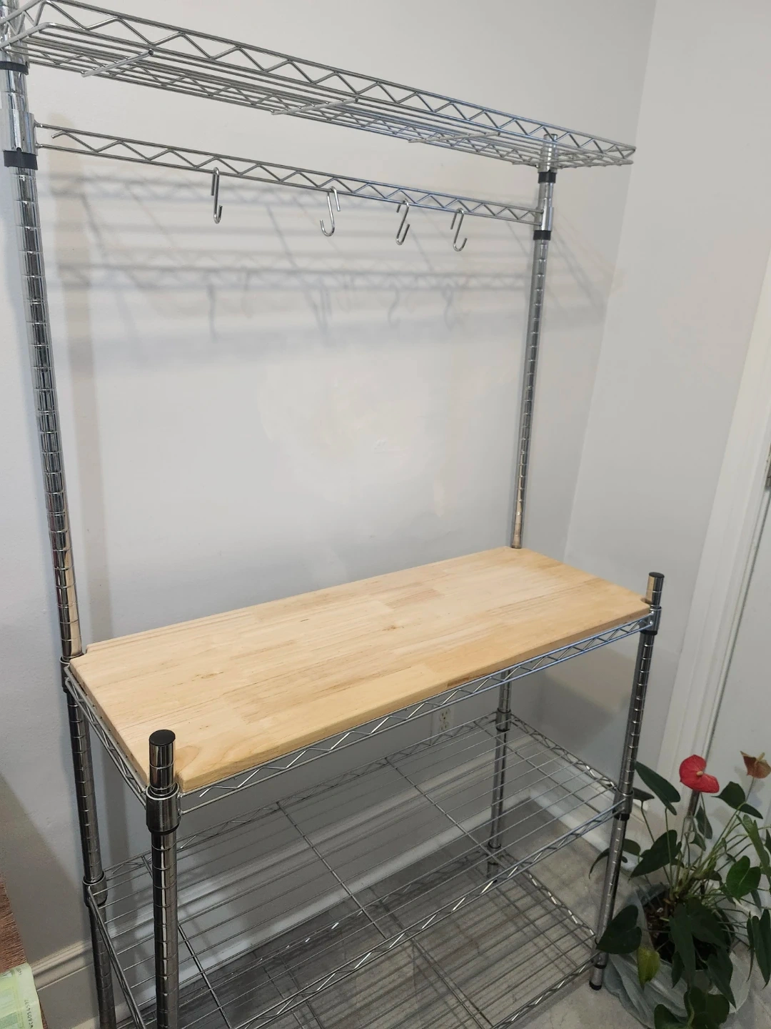 Chrome Kitchen Baker's Rack with Wood Top